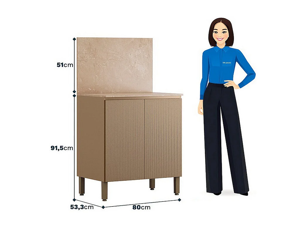 Meuble de Cuisine Bas 2 Portes 2 Niches Taupe et Crédence Marbre L 80 H 91.5 P 53.3 cm