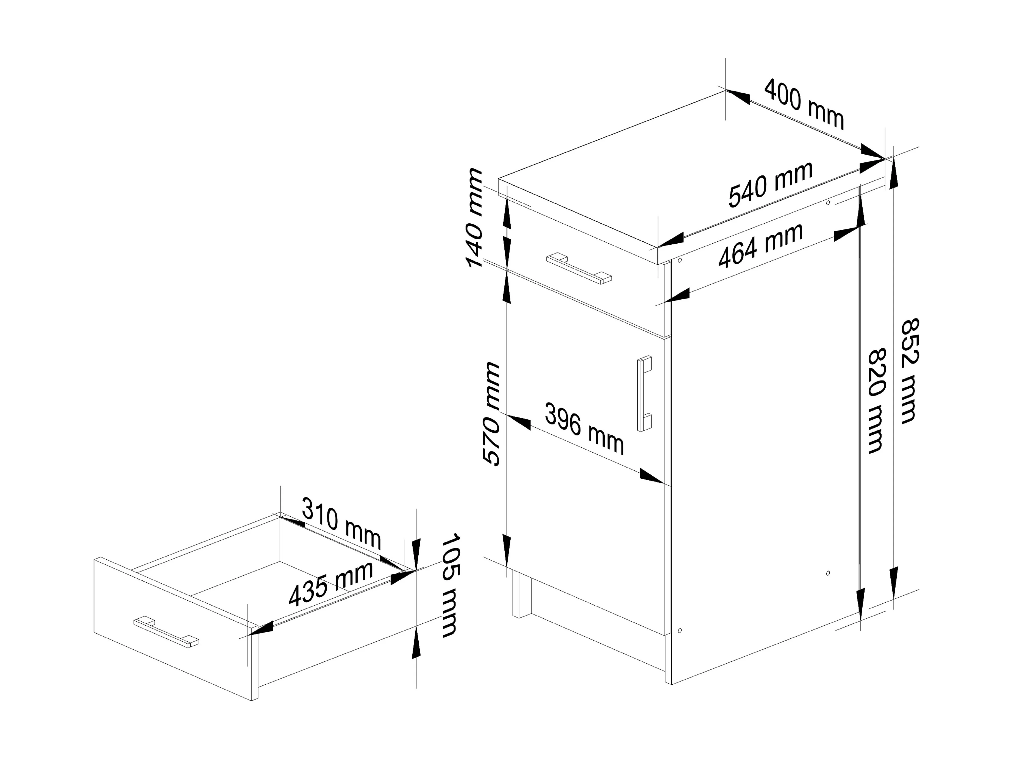 Armoires de cuisine basse AKORD S40 LIMA Blanc 40 cm 1 porte 1 tiroir façade Chêne Sonoma 2 étagères 40x44,5x82 cm
