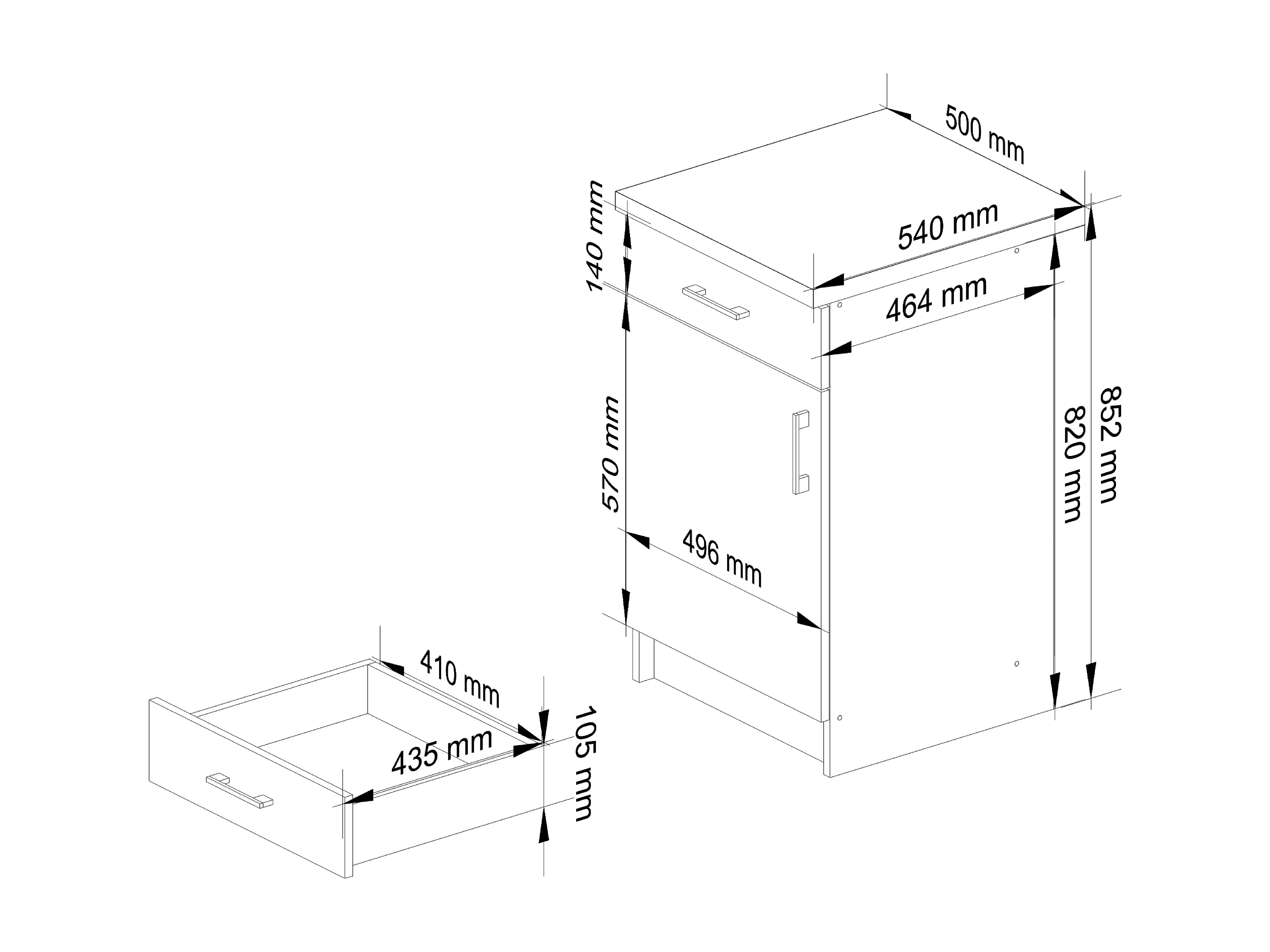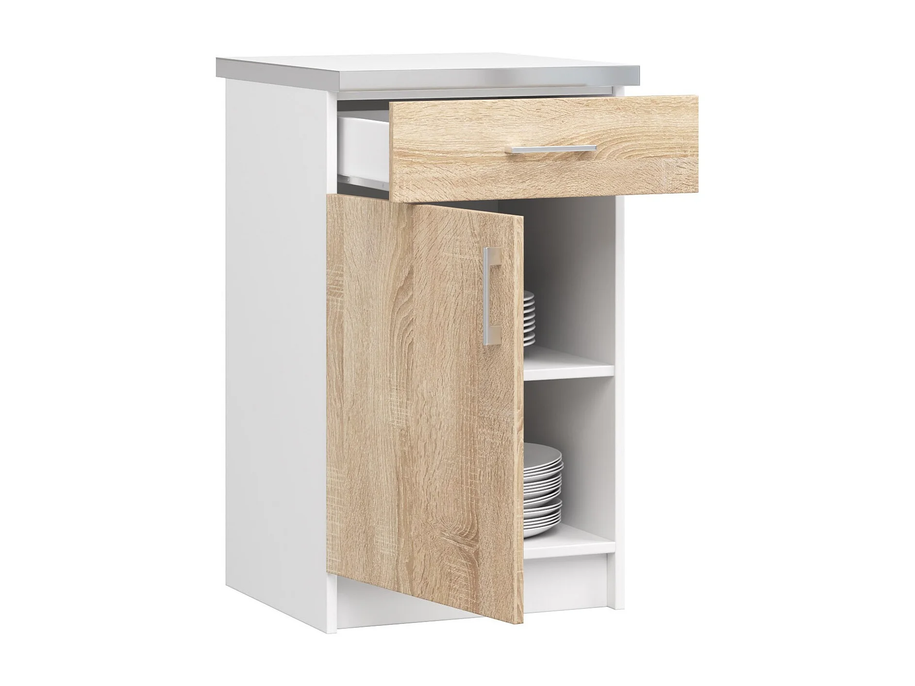Armoires de cuisine basse AKORD S50 LIMA Blanc 50 cm 1 porte 1 tiroir façade Chêne Sonoma 2 étagères 50x44,5x82 cm