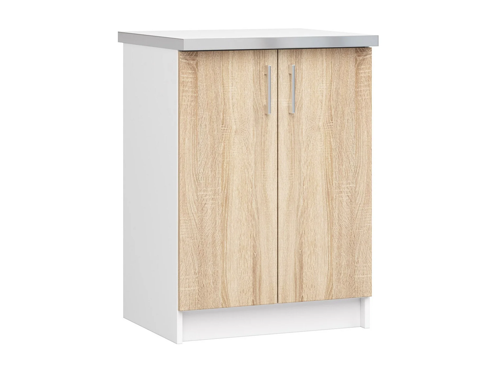 Armoires de cuisine basse AKORD S60 LIMA Blanc 60 cm 2 portes façade Chêne Sonoma 2 étagères 60x44,5x82 cm