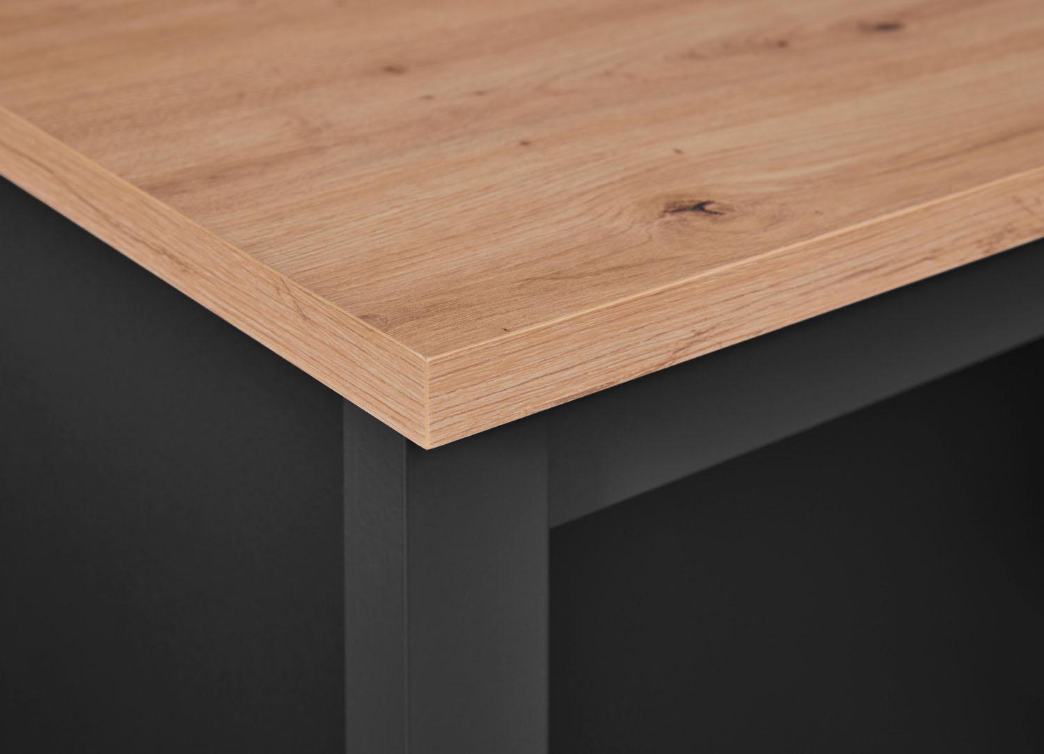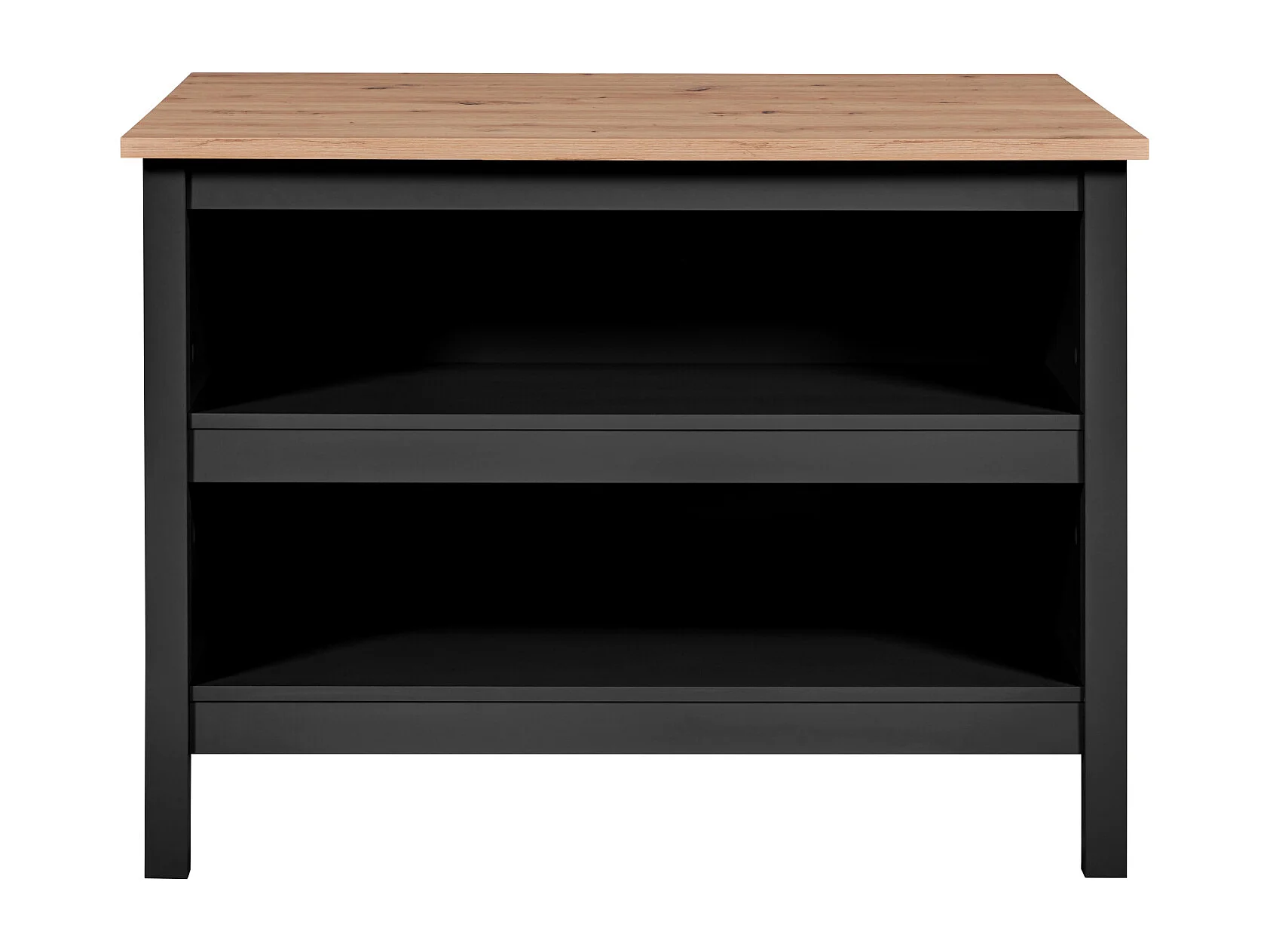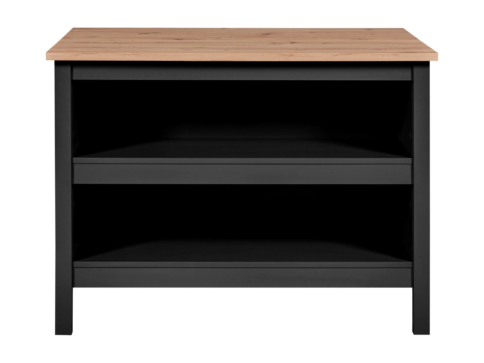 Meuble de cuisine, ilot de cuisine en bois MDF coloris chêne artisan, noir - longueur 124 x profondeur 75 x hauteur 91,50 cm