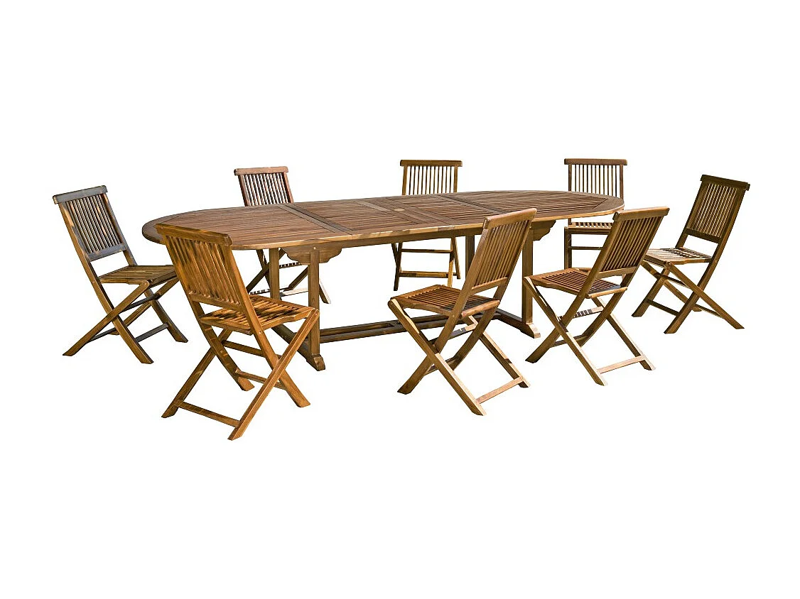 MAEVA - Ensemble de jardin bois teck huilé table ovale + 8 chaises