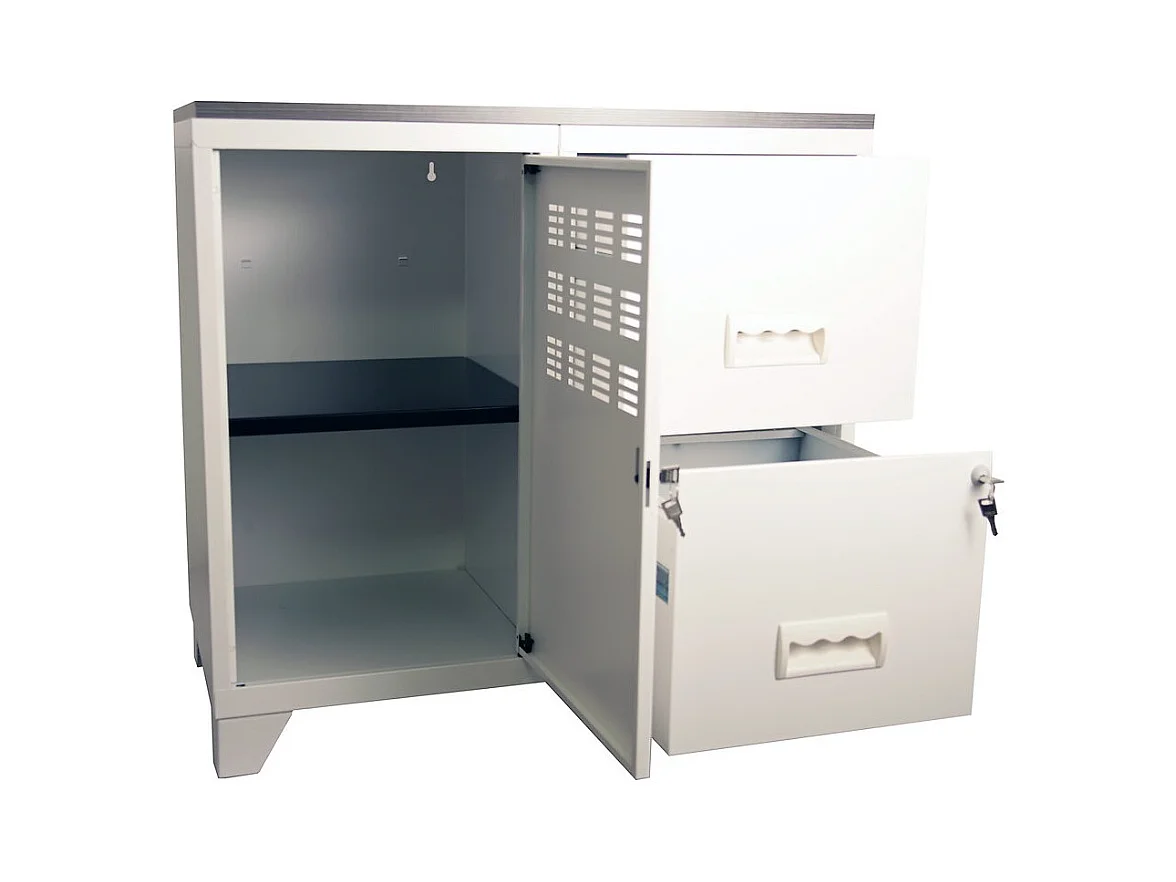 Meuble de rangement 1 porte 2 tiroirs métal blanc Regus