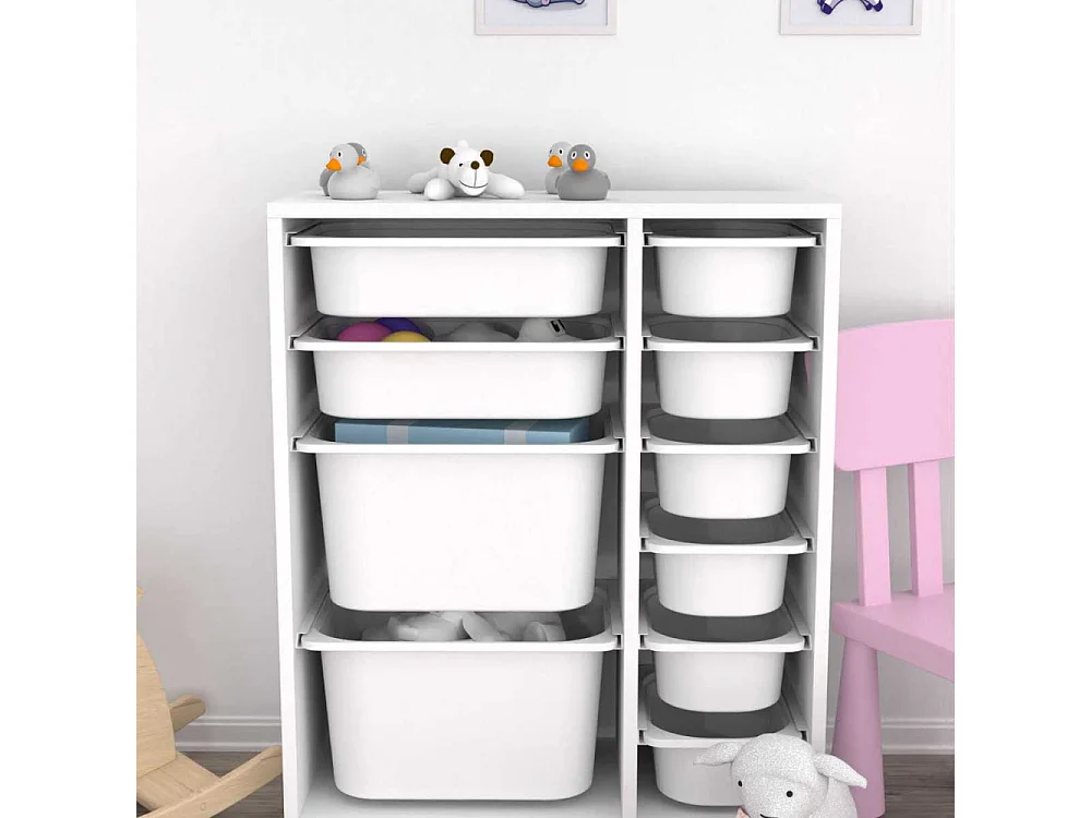 Meuble de rangement enfant 4 bacs de rangement. 41.5 x 30 x 89cm (Lot de 2) blanc