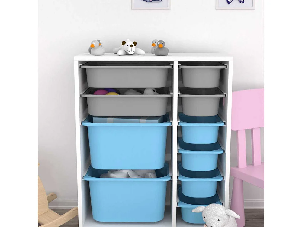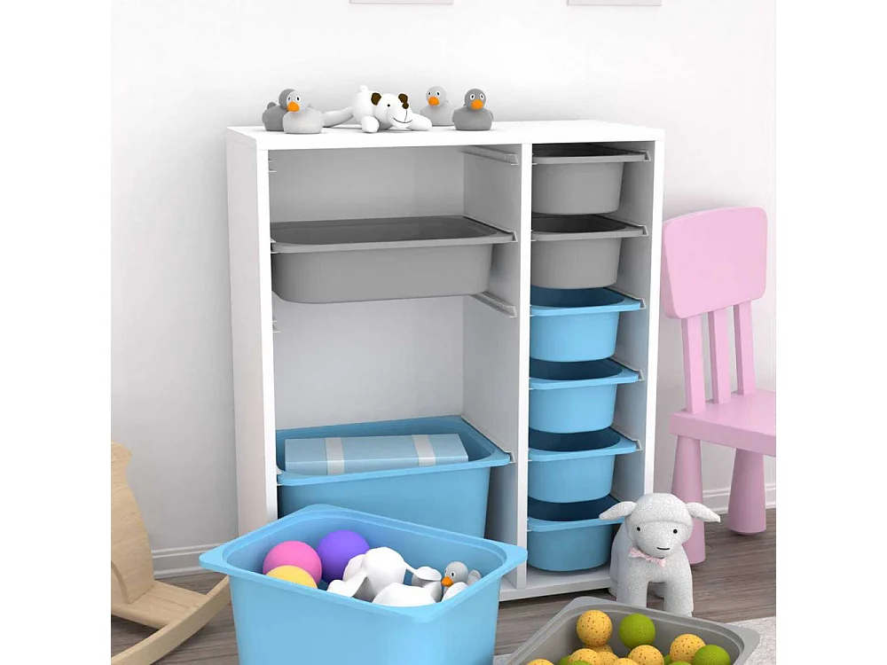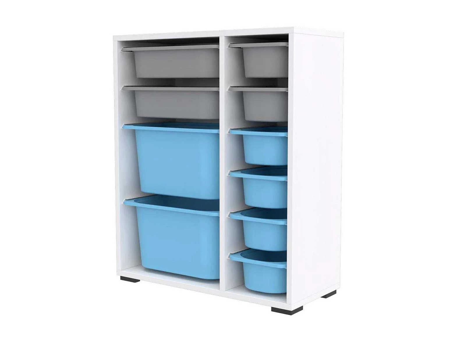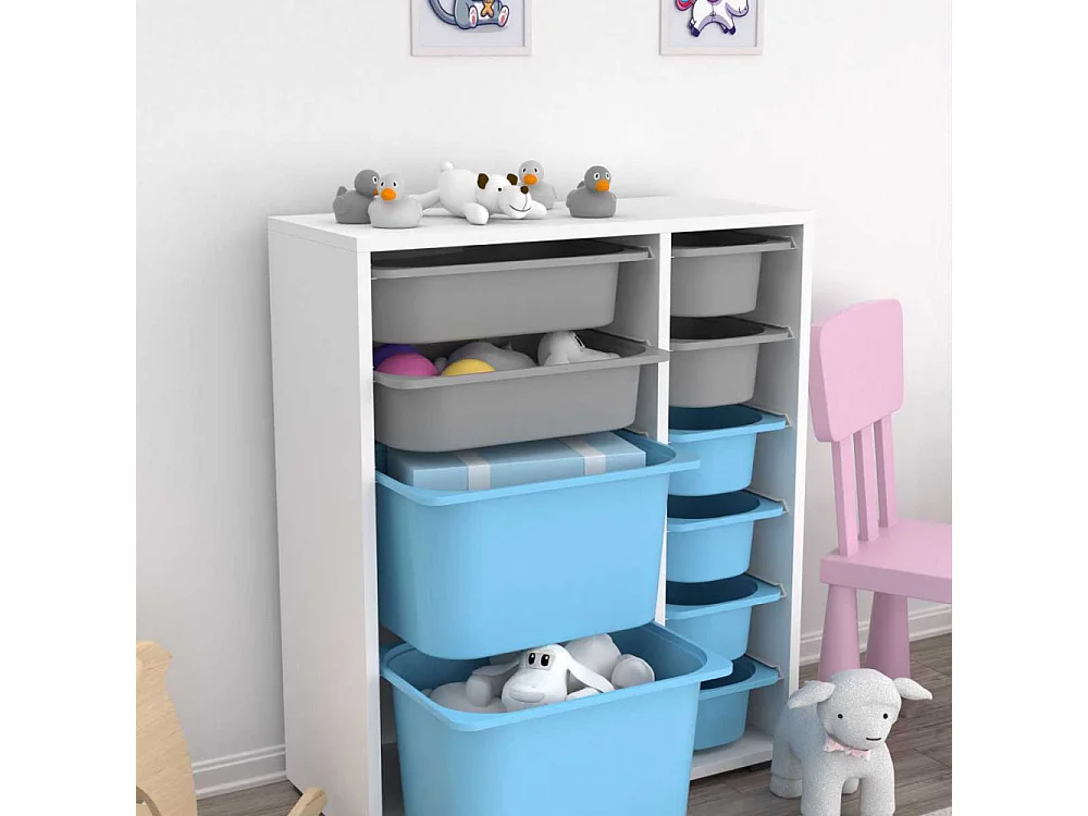 Meuble de rangement 10 tiroirs Zen Blanc, gris et bleu