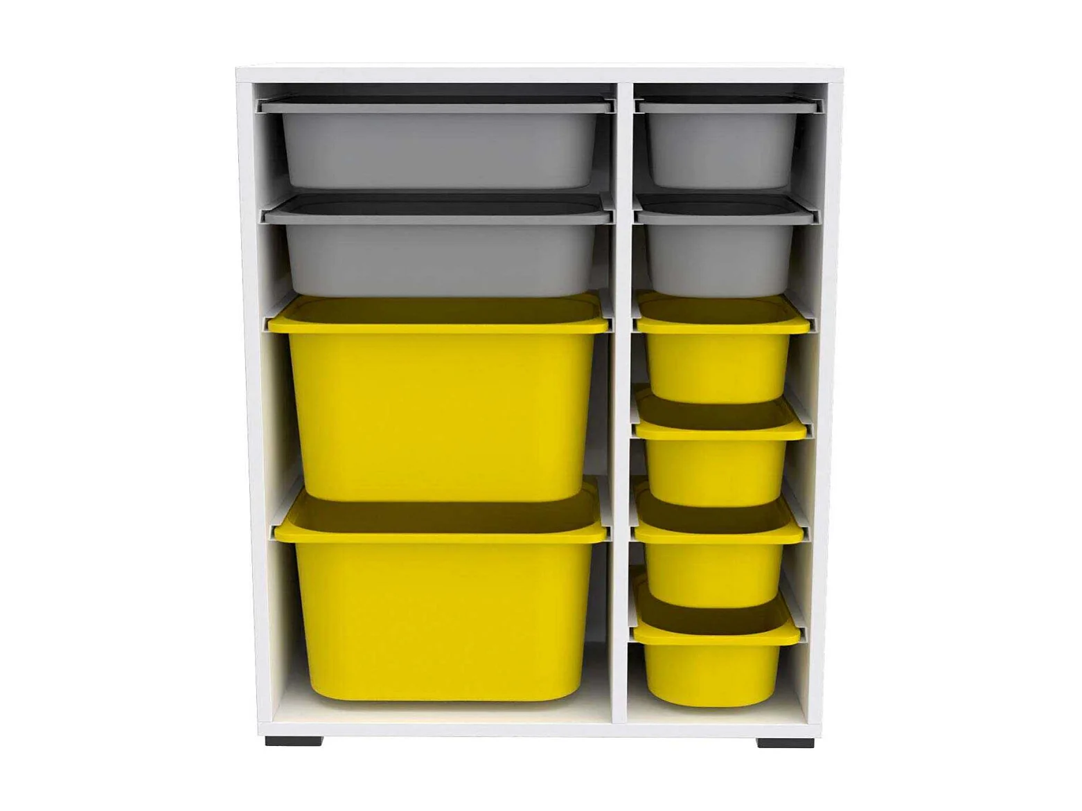 Meuble de rangement 10 tiroirs Zen Blanc, gris et jaune