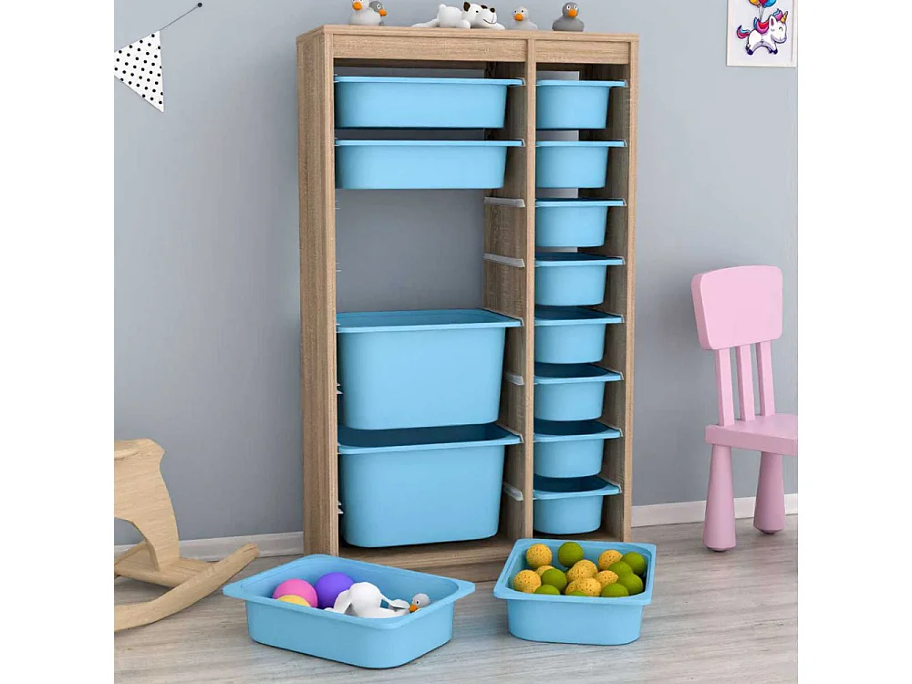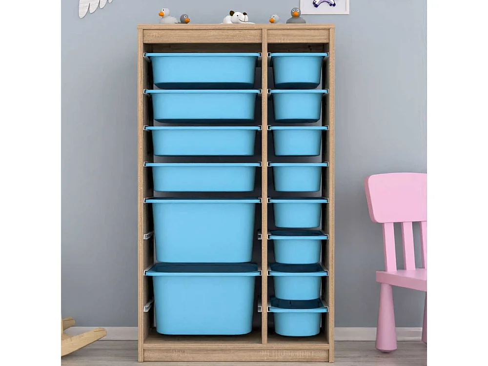 Meuble de rangement 14 tiroirs Montana Sonomo et bleu