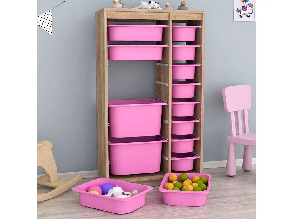 Meuble de rangement 14 tiroirs Montana Sonomo et rose