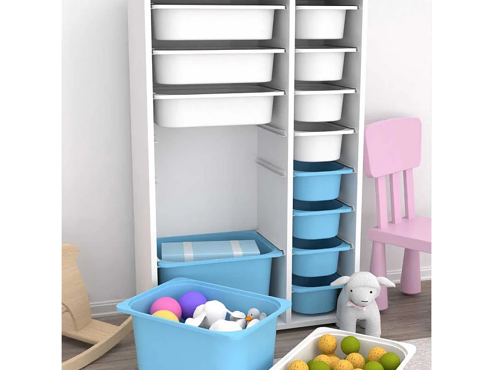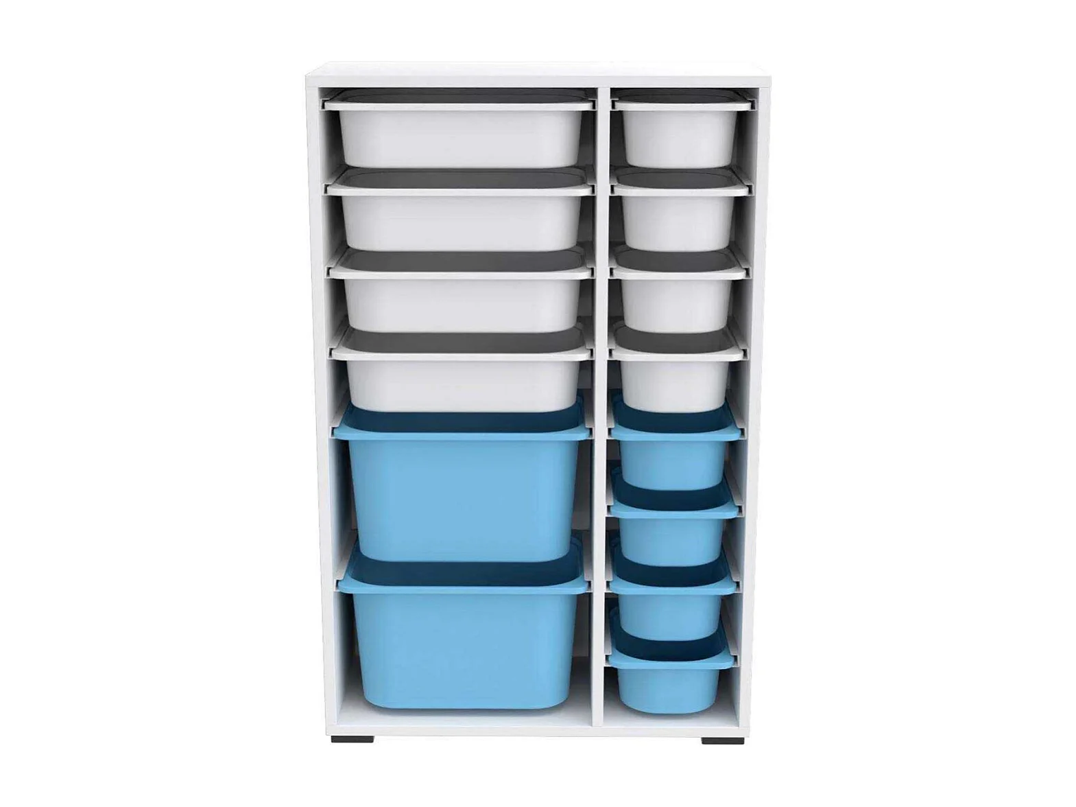 Meuble de rangement 14 tiroirs Rine Blanc et bleu