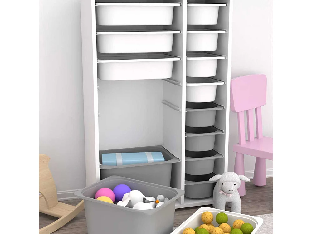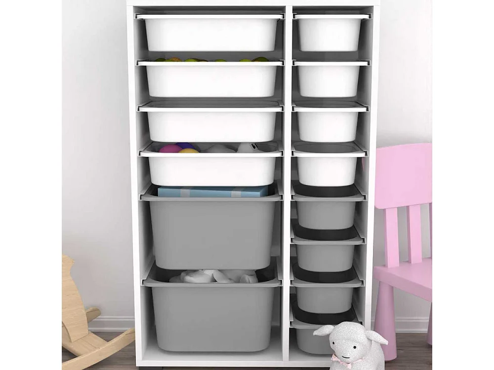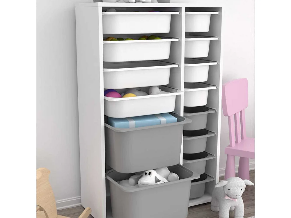 Meuble de rangement 14 tiroirs Rine Blanc et gris