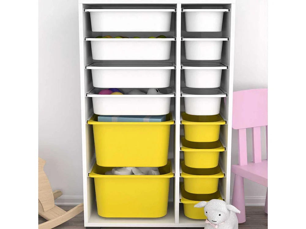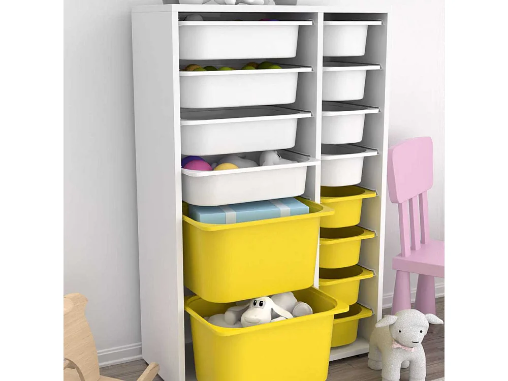 Meuble de rangement 14 tiroirs Rine Blanc et jaune