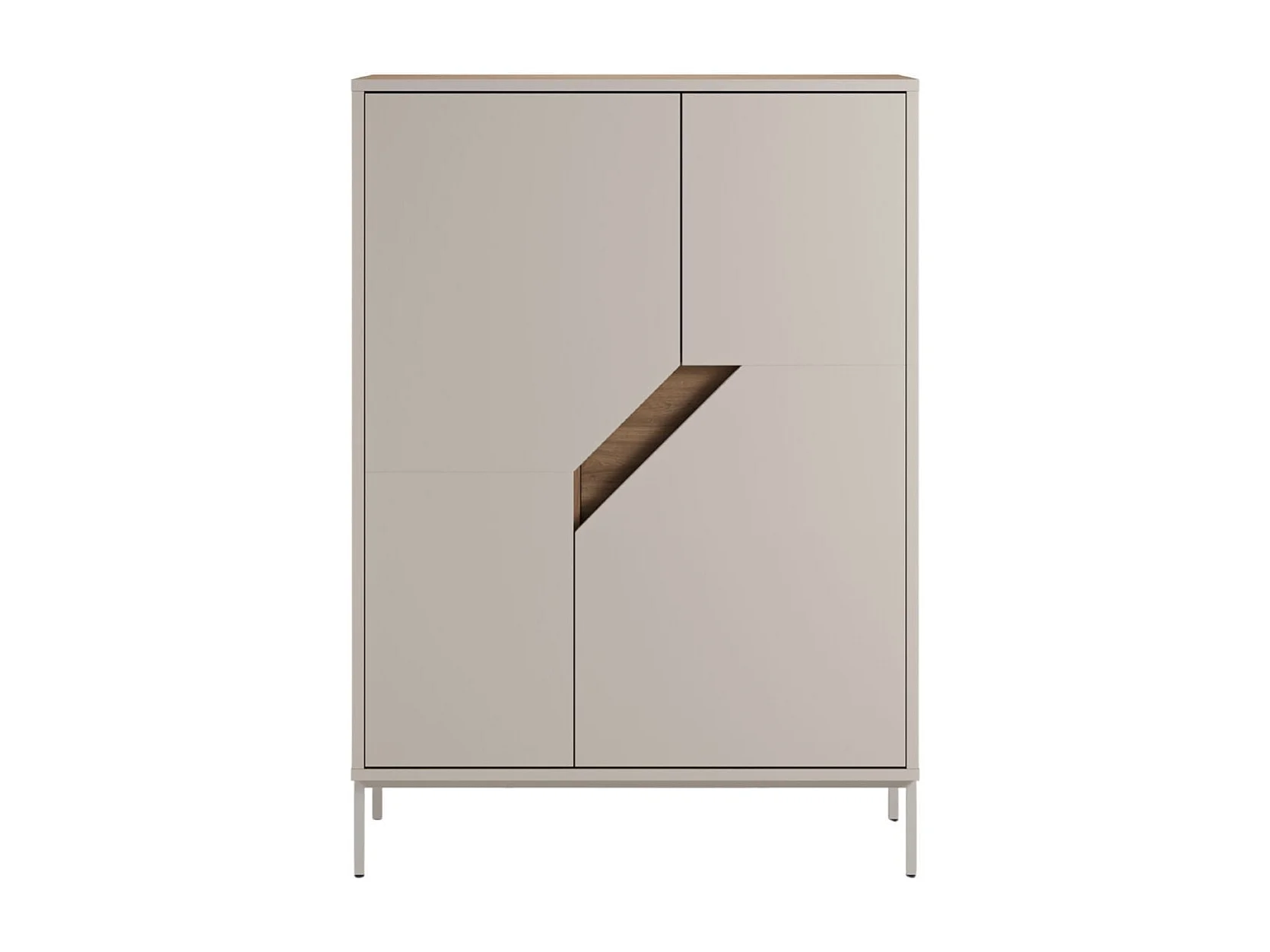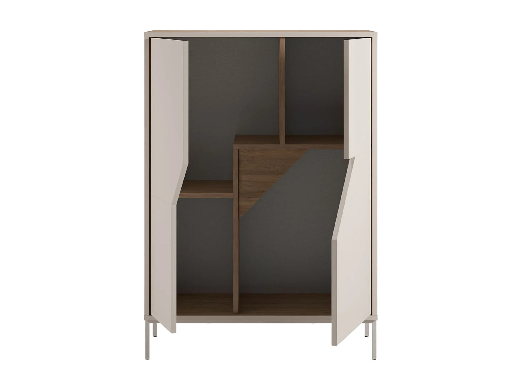 Meuble de rangement 2 portes en mélaminé beige et imitation bois avec découpe graphique oblique - ANOUK