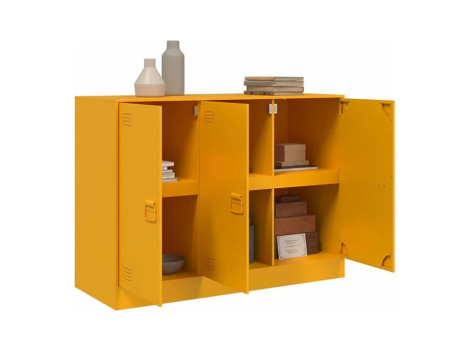Meuble de rangement 3 portes en acier Lazard 99cm - Style Industriel-Couleur Jaune curry