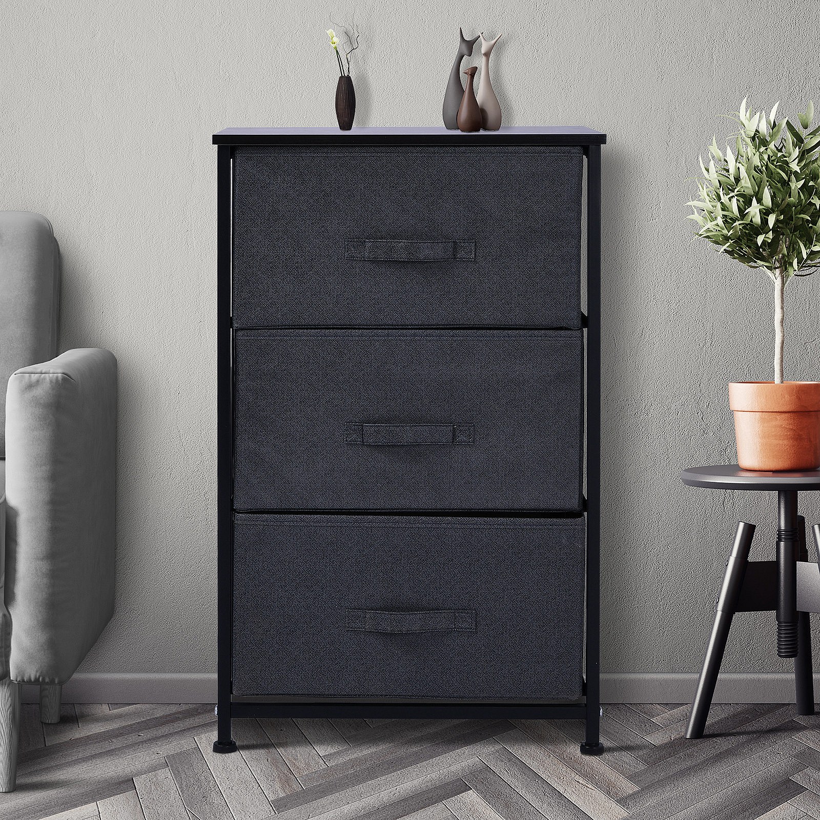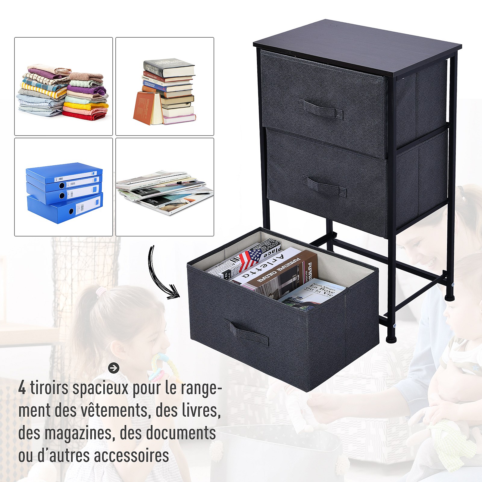 Meuble de rangement chiffonnier design 3 ou 4 tiroirs métal MDF non tissé noir