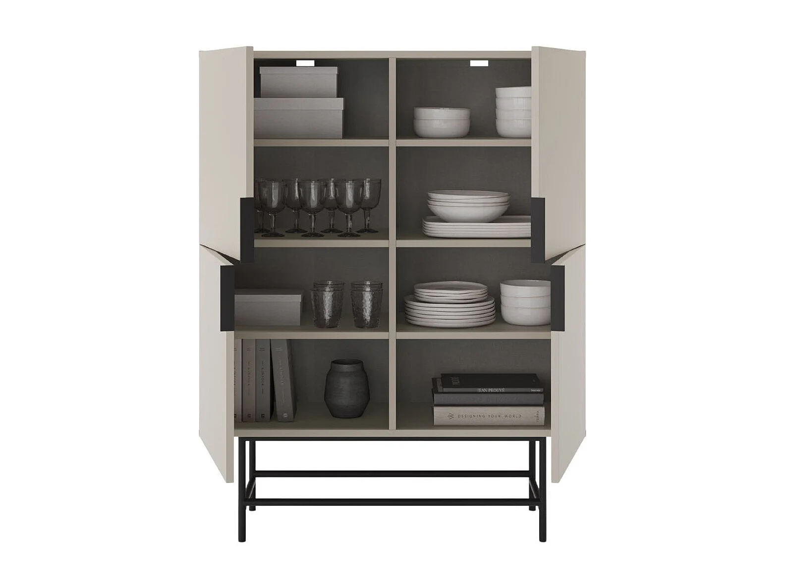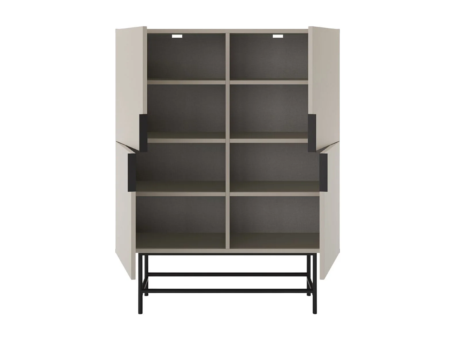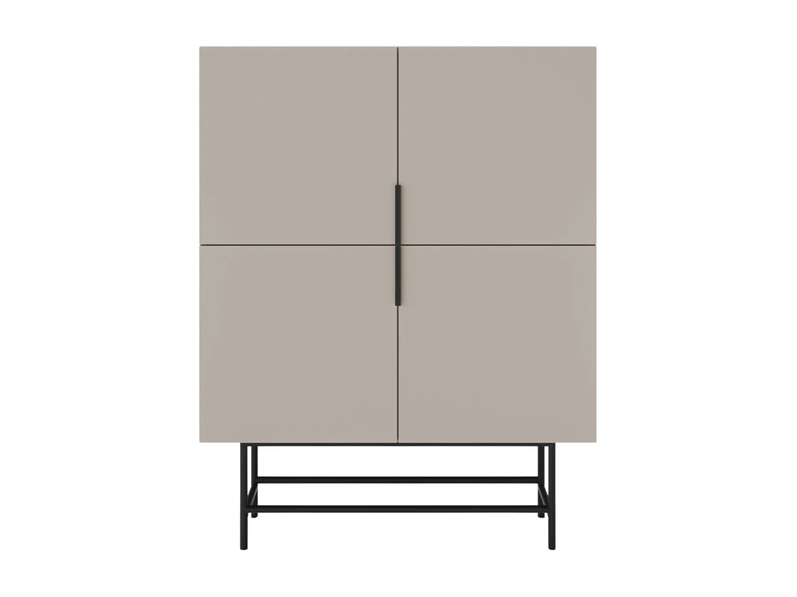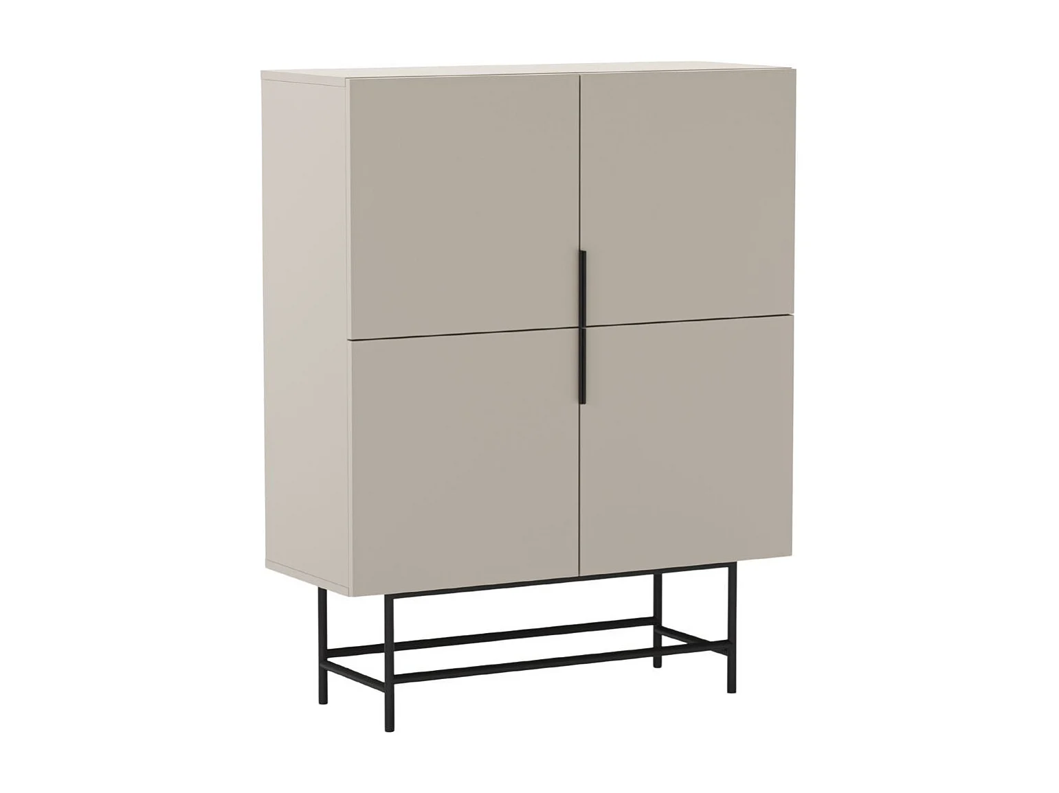 Meuble de rangement 4 portes en mélaminé beige et piètement et poignées en métal laqué noir - ALDINE
