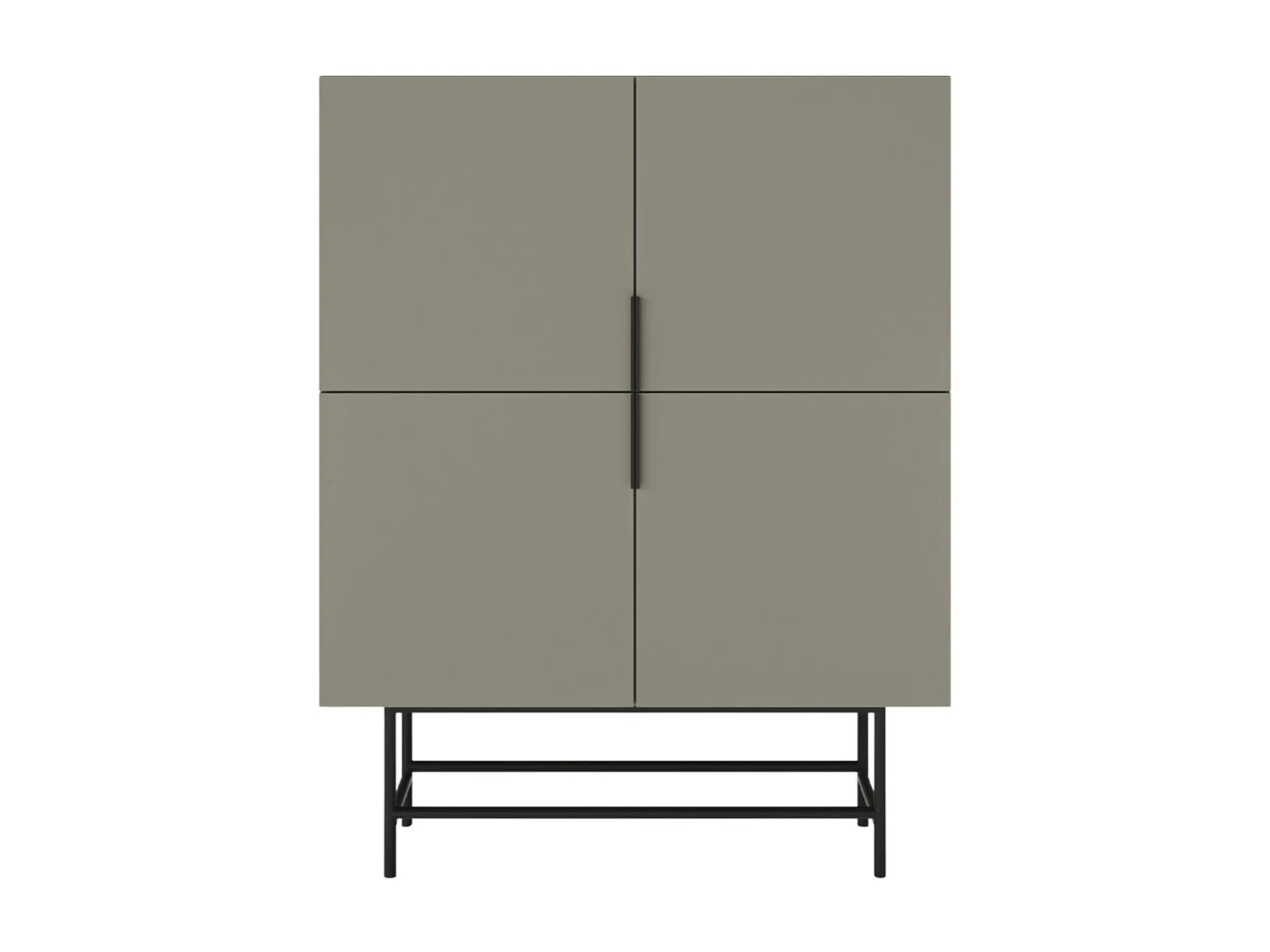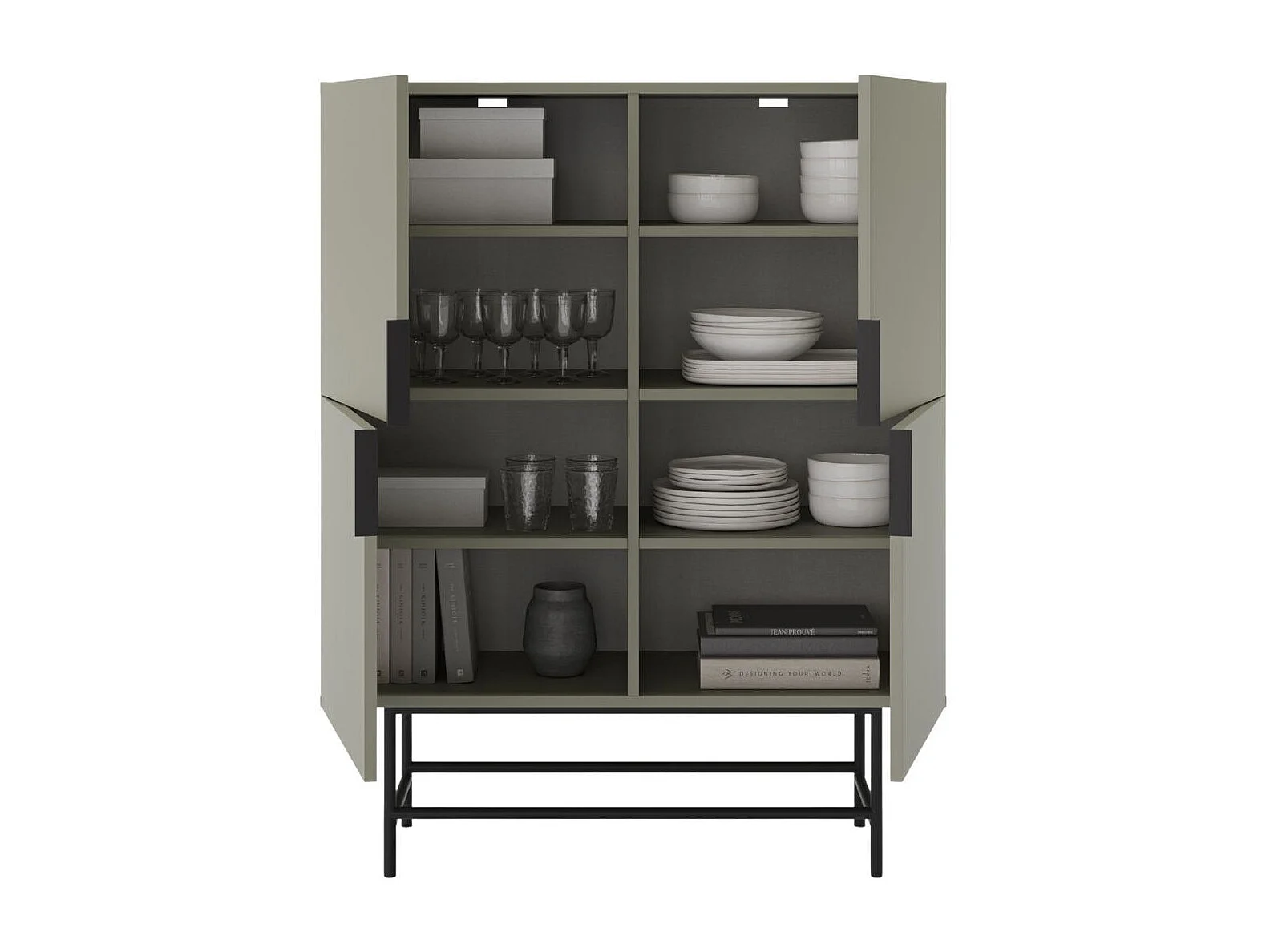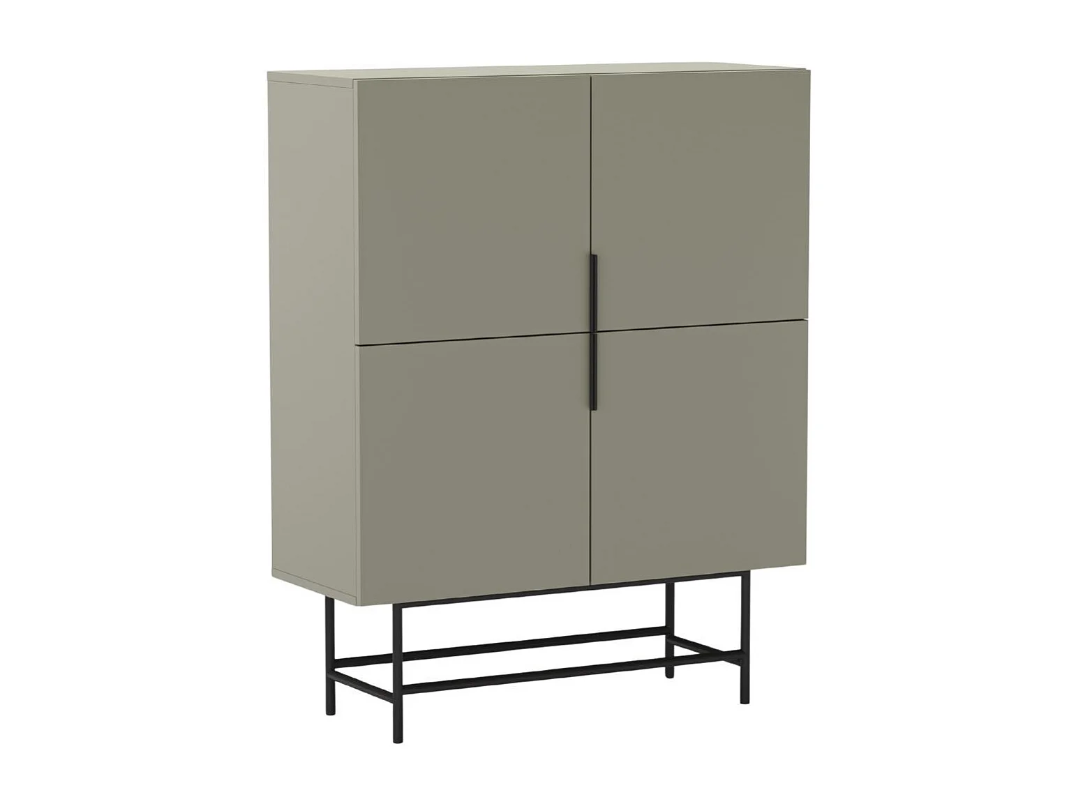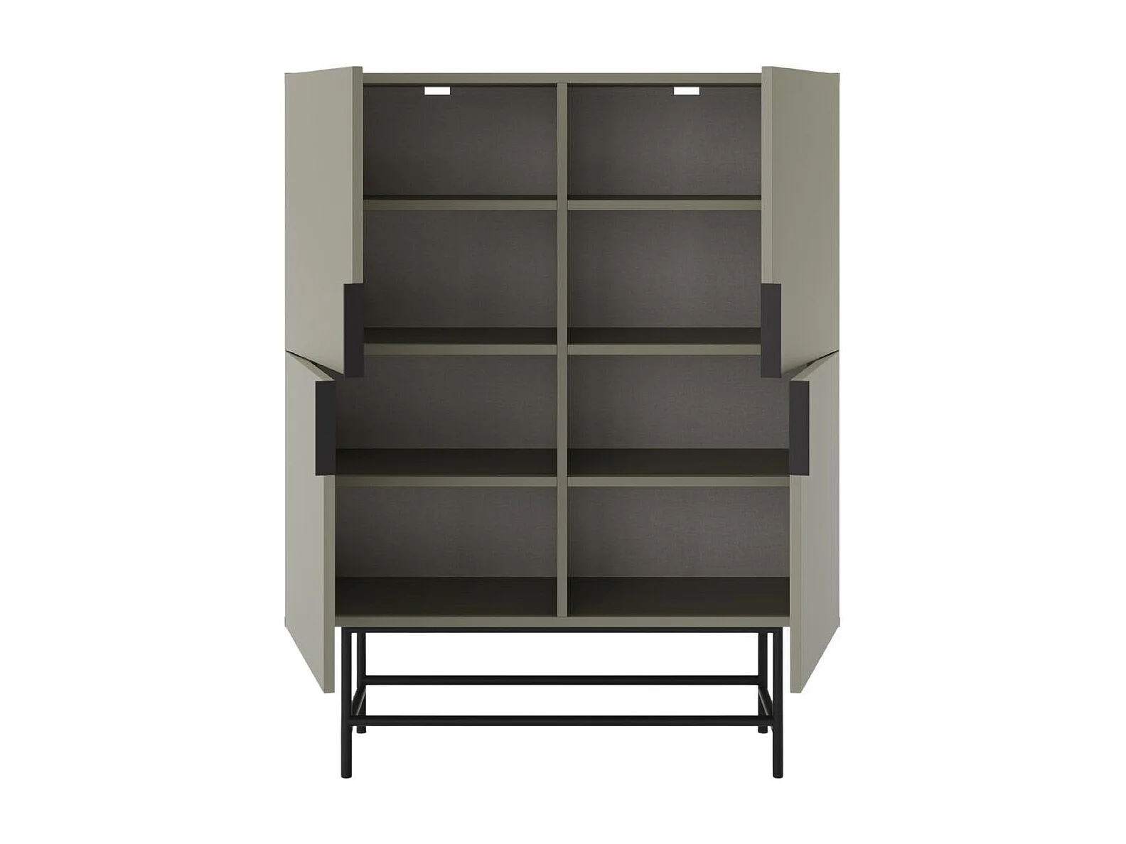 Meuble de rangement 4 portes en mélaminé vert kaki et piètement et poignées en métal laqué noir - ALDINE