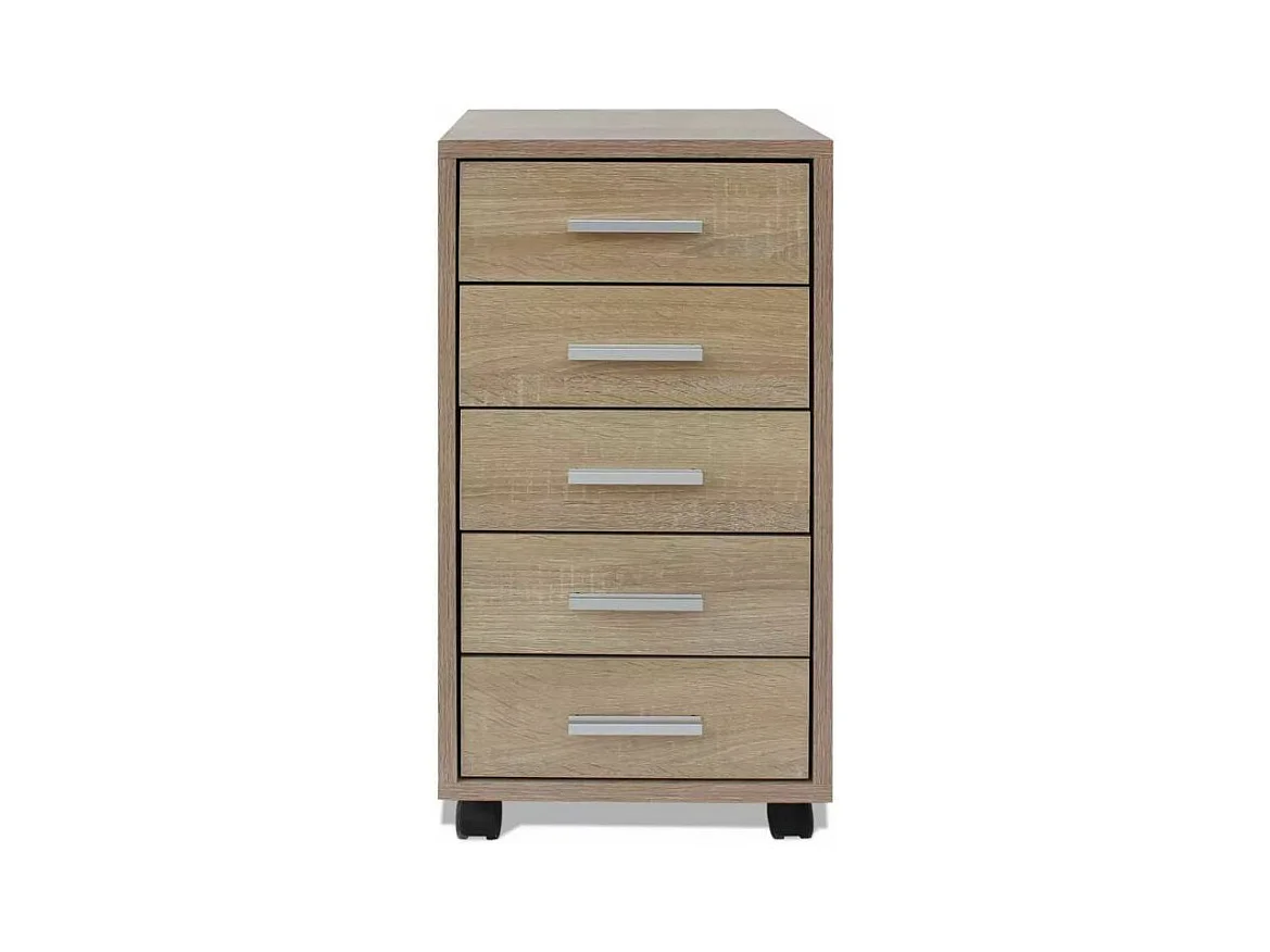 Meuble de rangement 5 tiroirs chêne foncé Kapci