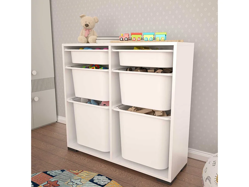 Meuble de rangement enfant 4 bacs de rangement. 41.5 x 30 x 89cm (Lot de 2) blanc