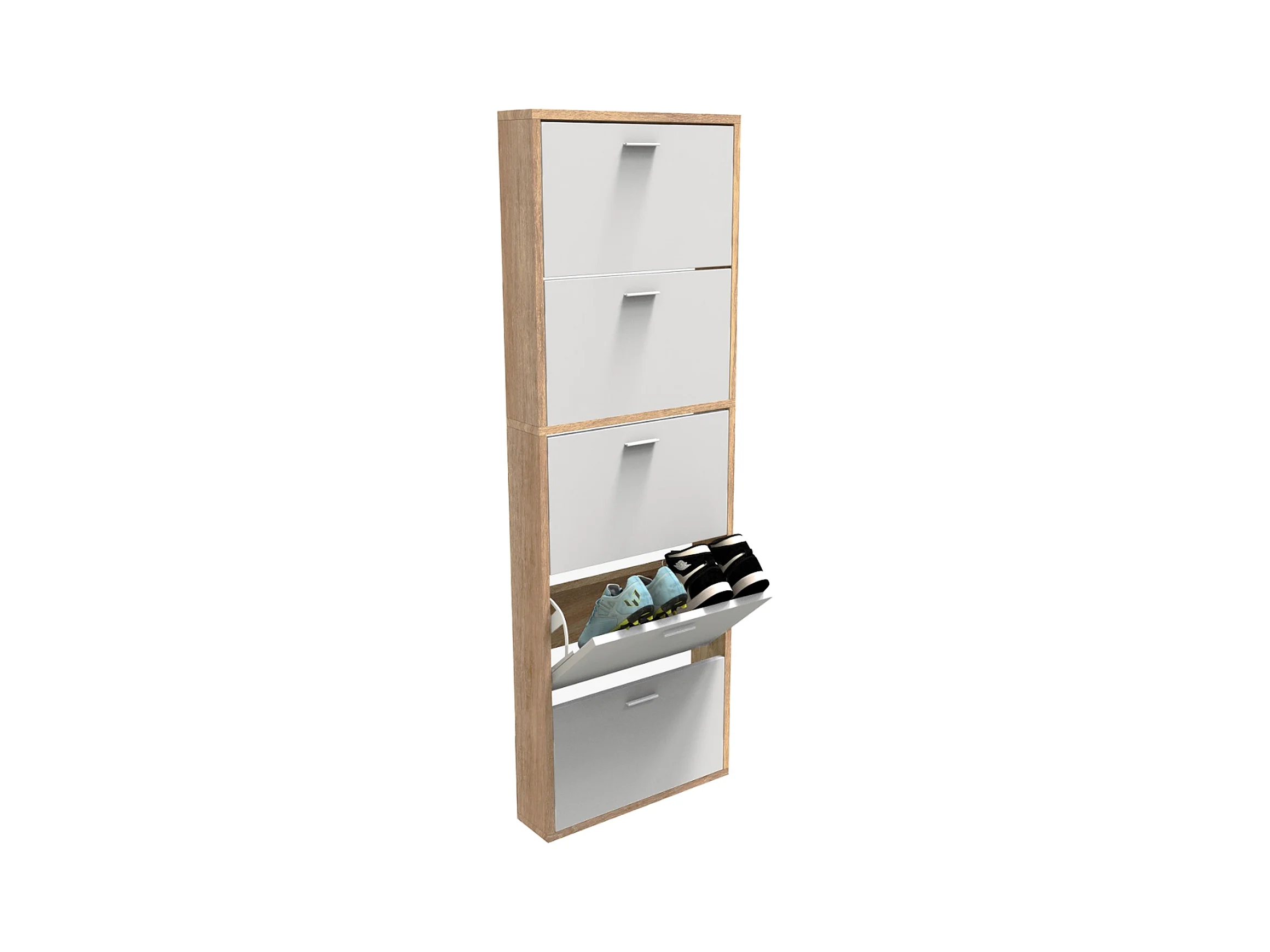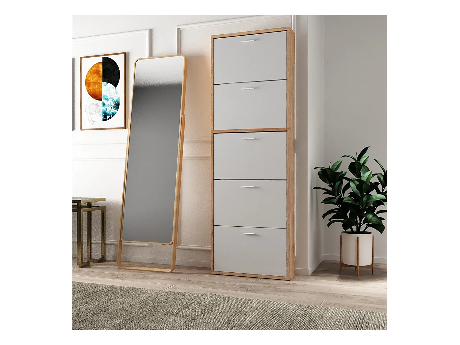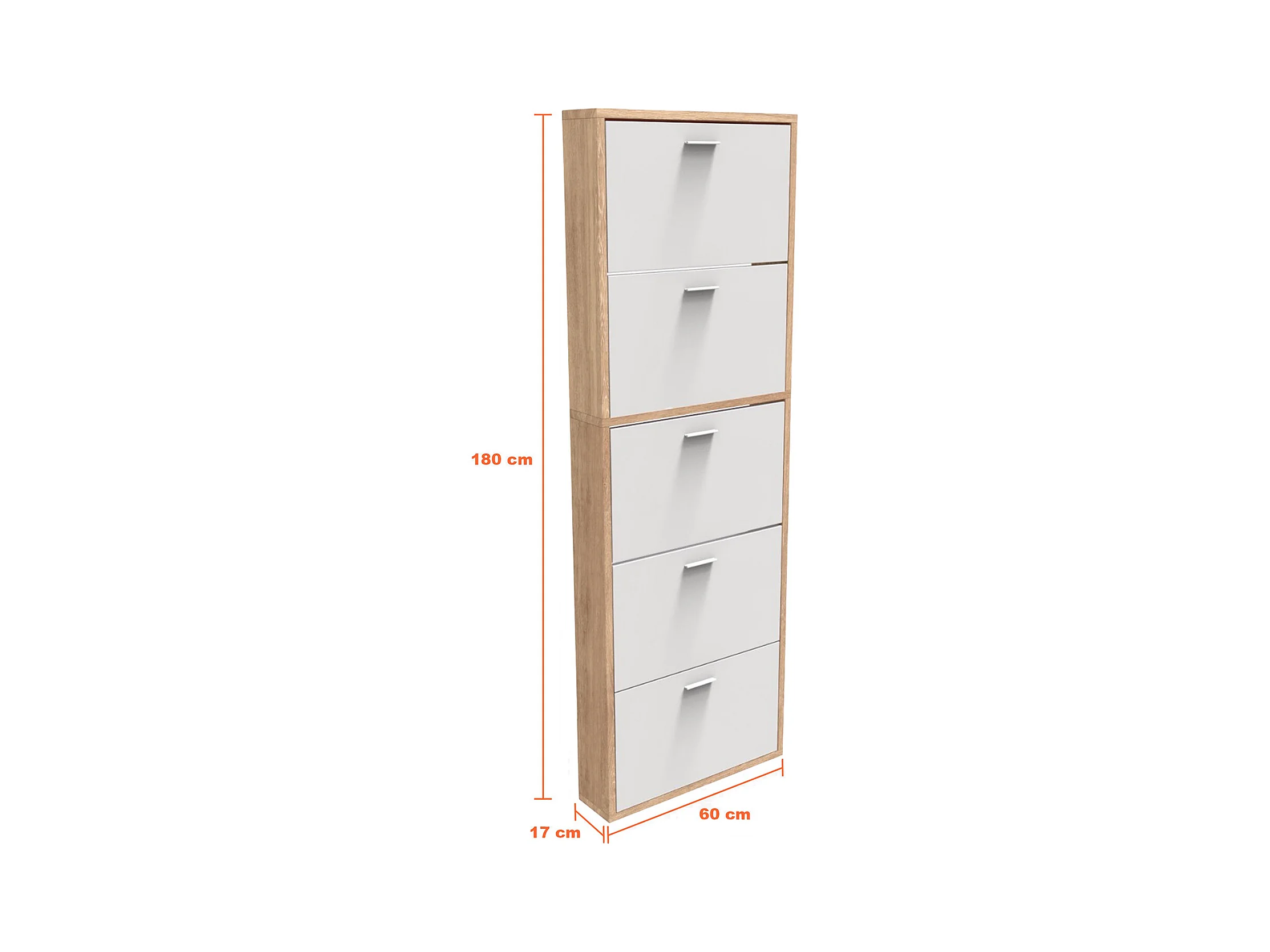 CASABEL Meuble Rangement Chaussure 15 Paires - Pour Entree Couloir - 60x17x180 cm - Blanc Bois Clair