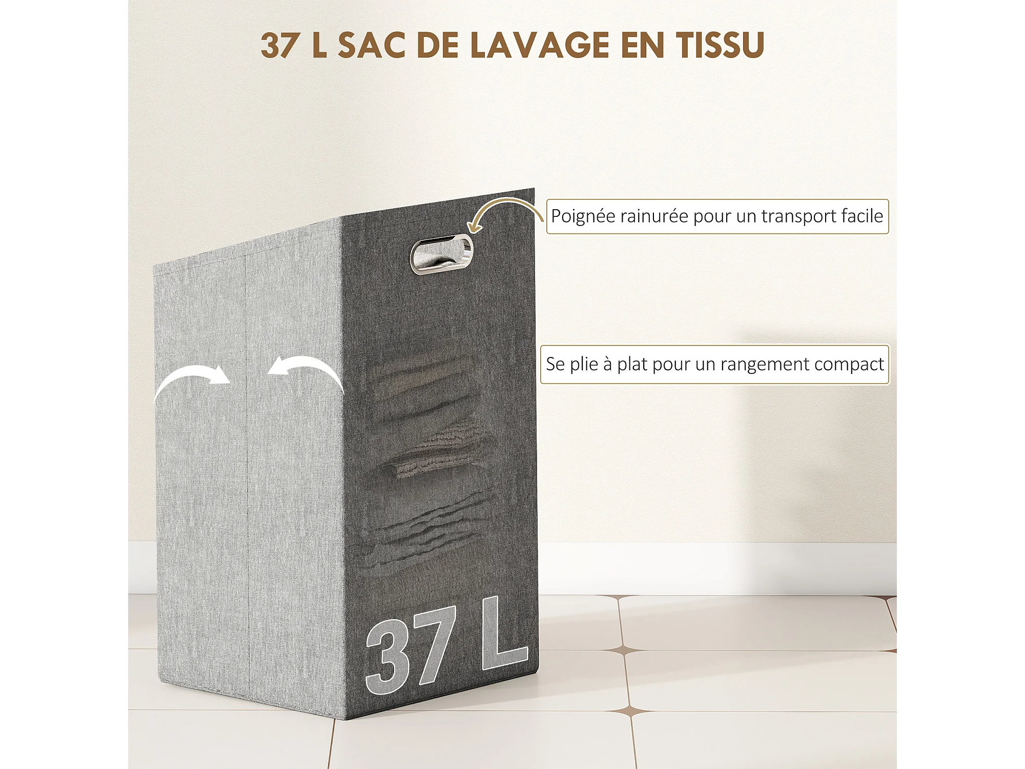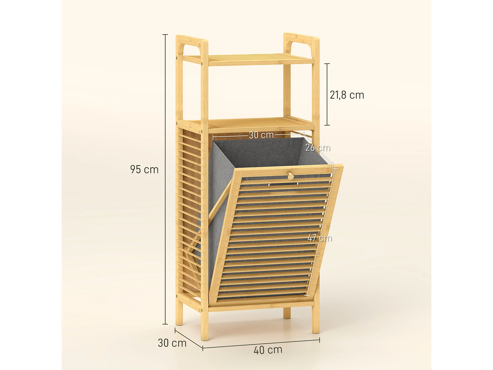 Meuble de Rangement à Linge en Bambou avec Panier Amovible 37L - Effet Bois Naturel