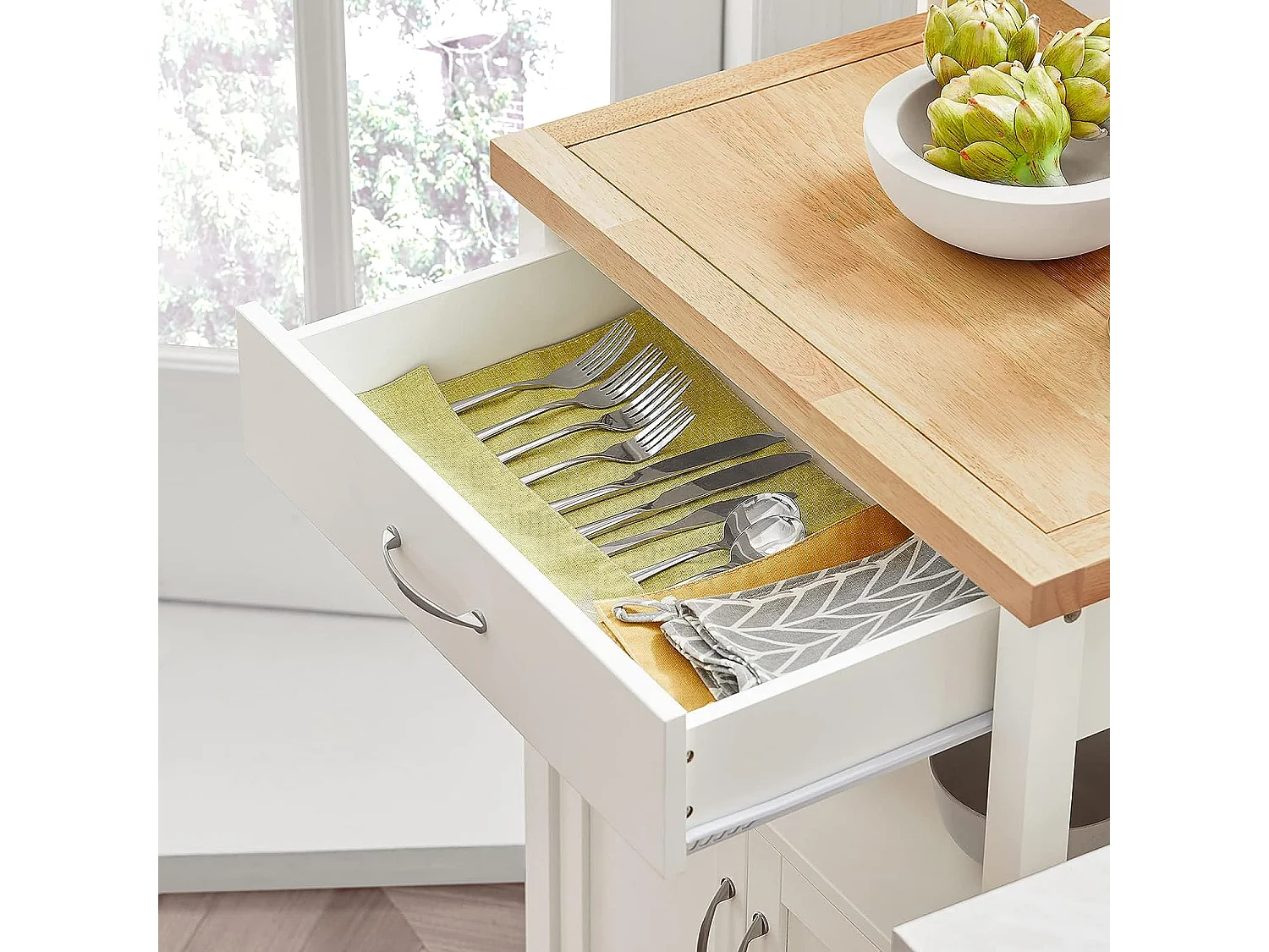 Desserte de cuisine multi-rangement - 3 tiroirs, 2 étagères, plateau amovible - bois hévéa MDF blanc