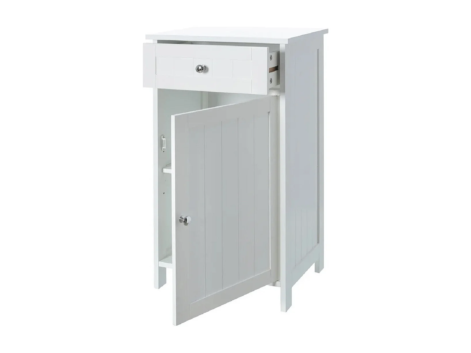 Meuble de rangement, armoire de SDB avec porte et tiroir coloris blanc - Longueur 43 x Profondeur 34 x Hauteur 77 cm