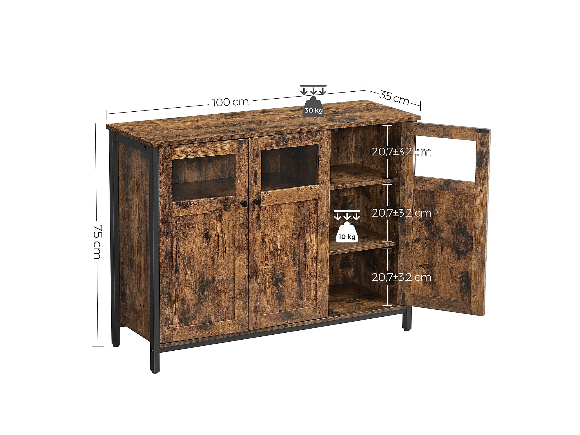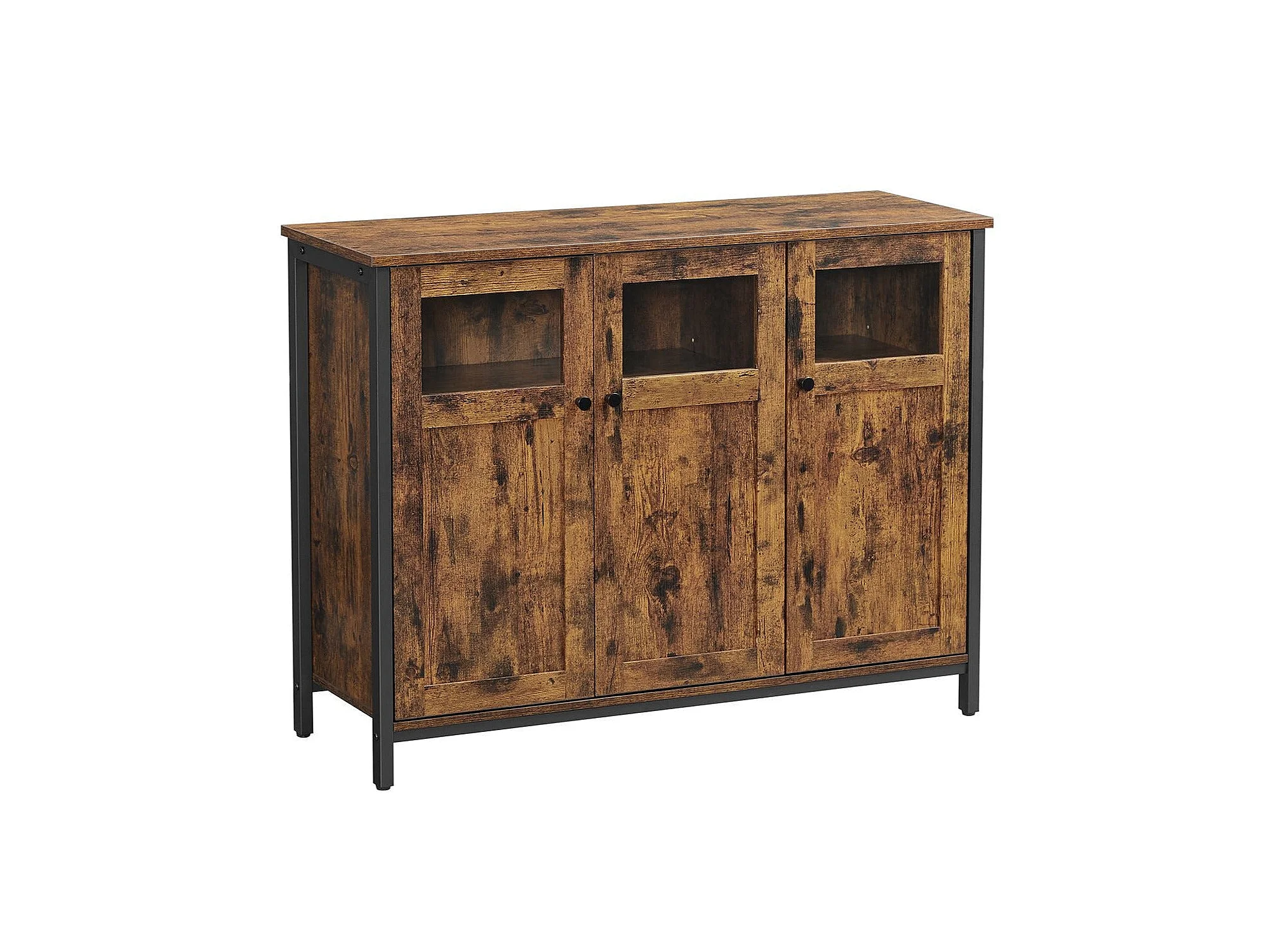 Meuble de rangement buffet avec placard 3 portes pour salle à manger salon cuisine entrée cadre en acier style industriel 100 cm marron rustique et noir 12_0002405