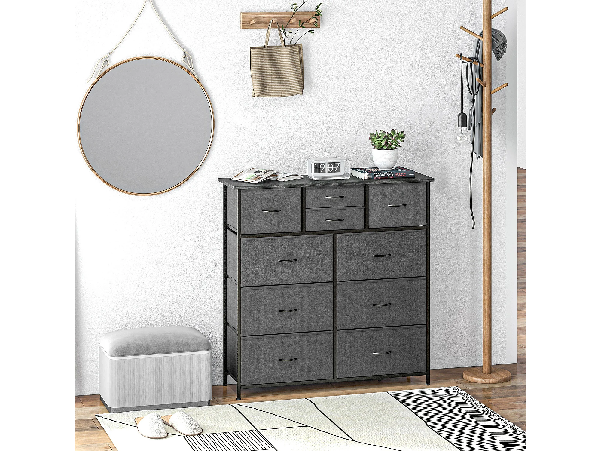 Meuble de rangement commode 10 tiroirs plateau acier MDF non tissé noir
