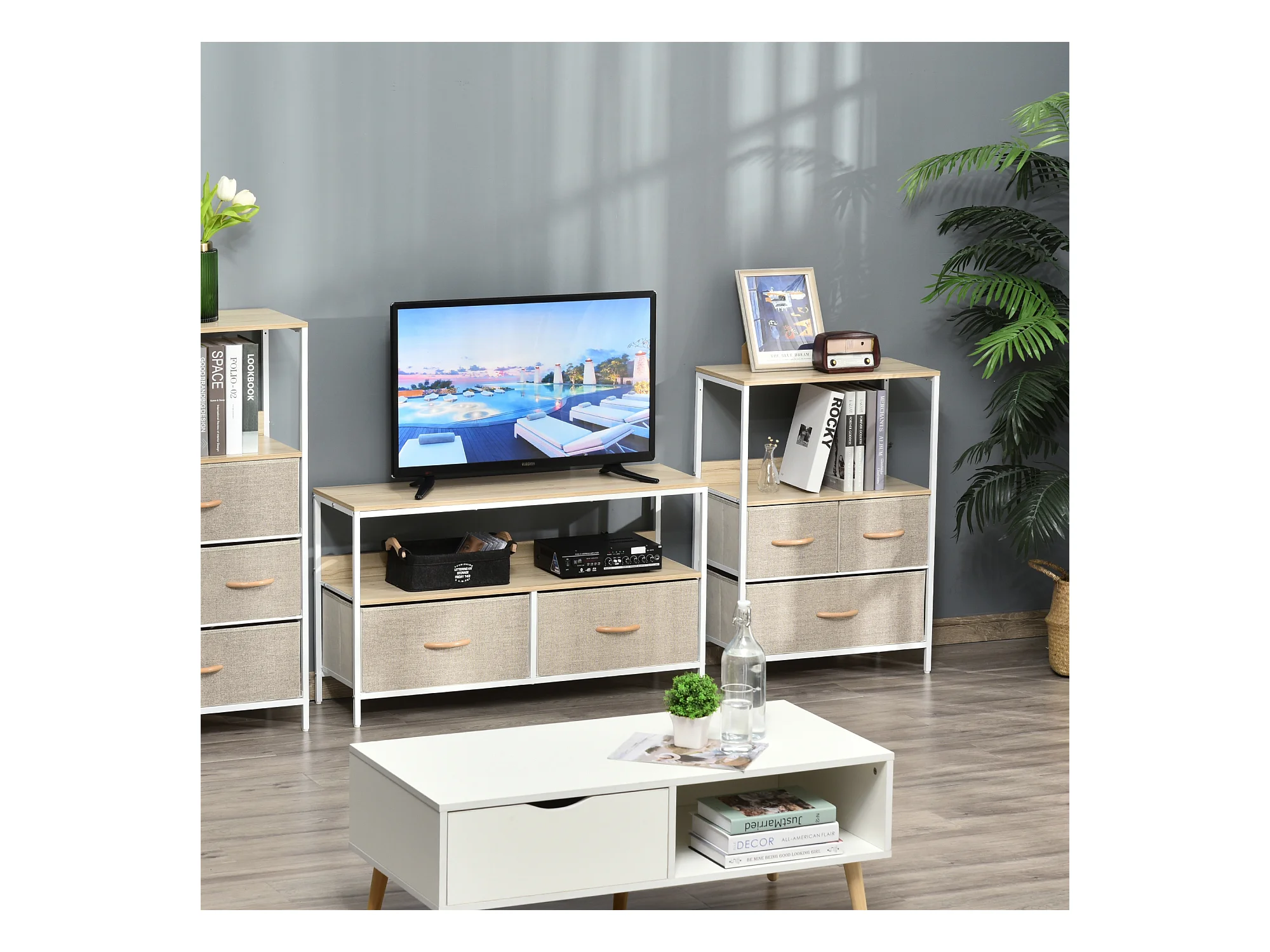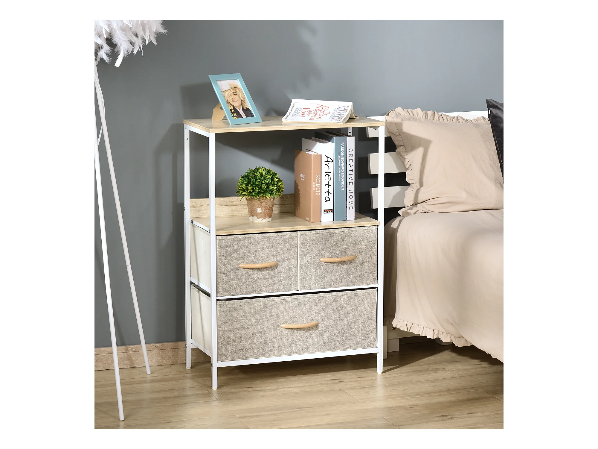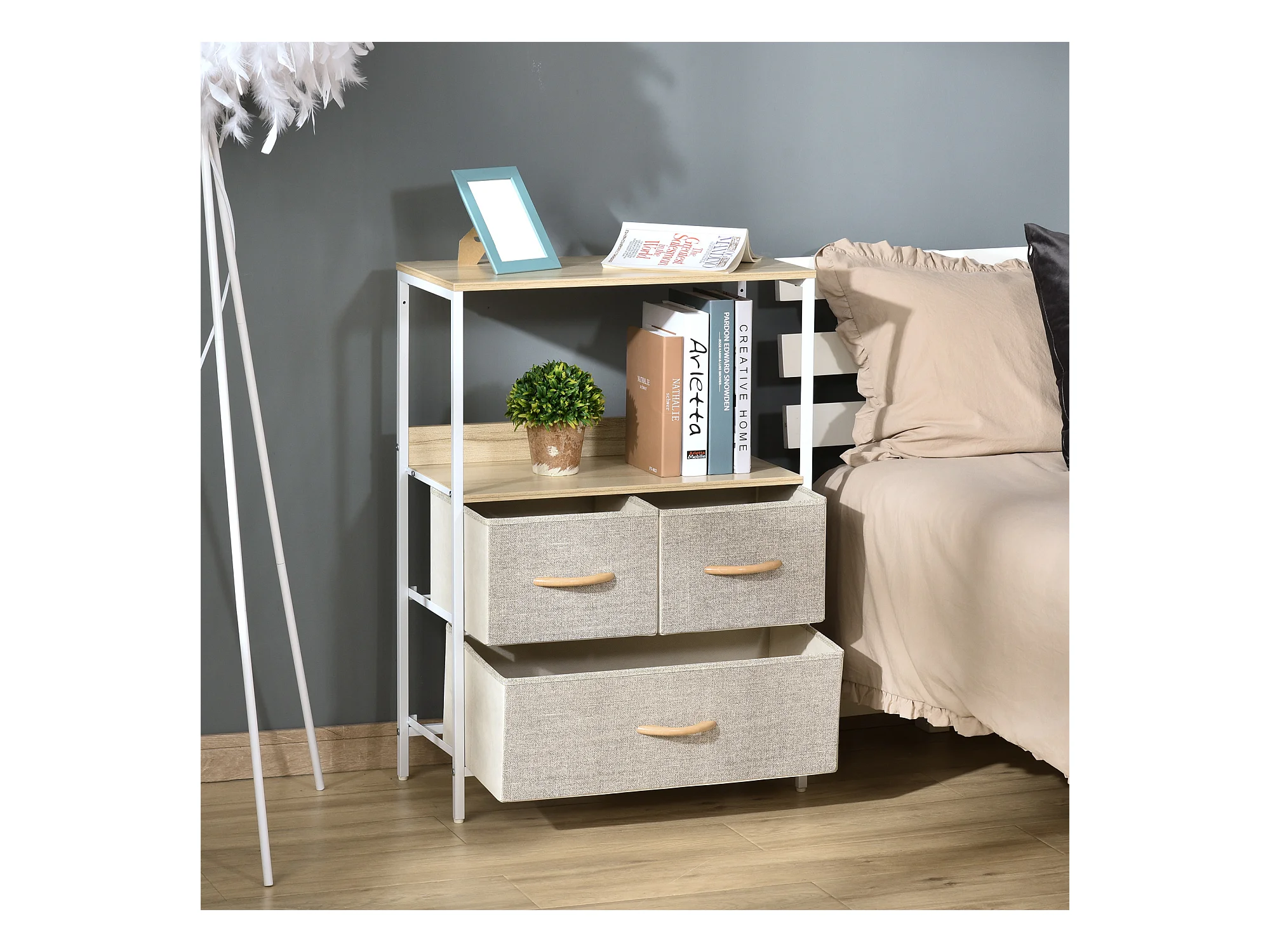 Meuble de rangement commode 3 tiroirs étagère plateau acier blanc MDF bois clair non tissé gris clair