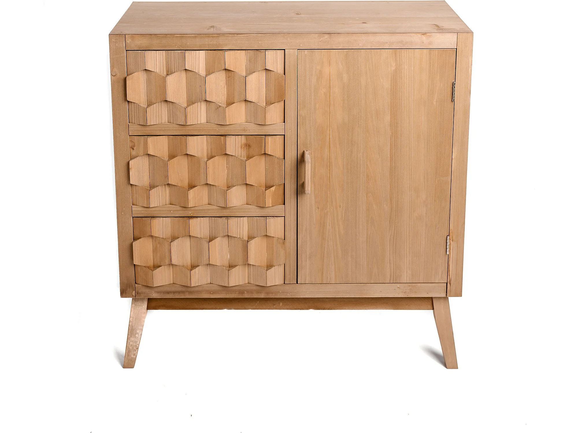 Meuble De Rangement, Commode En Bois Pin Motifs 4 Rangements Scandinave 75x30x78cm