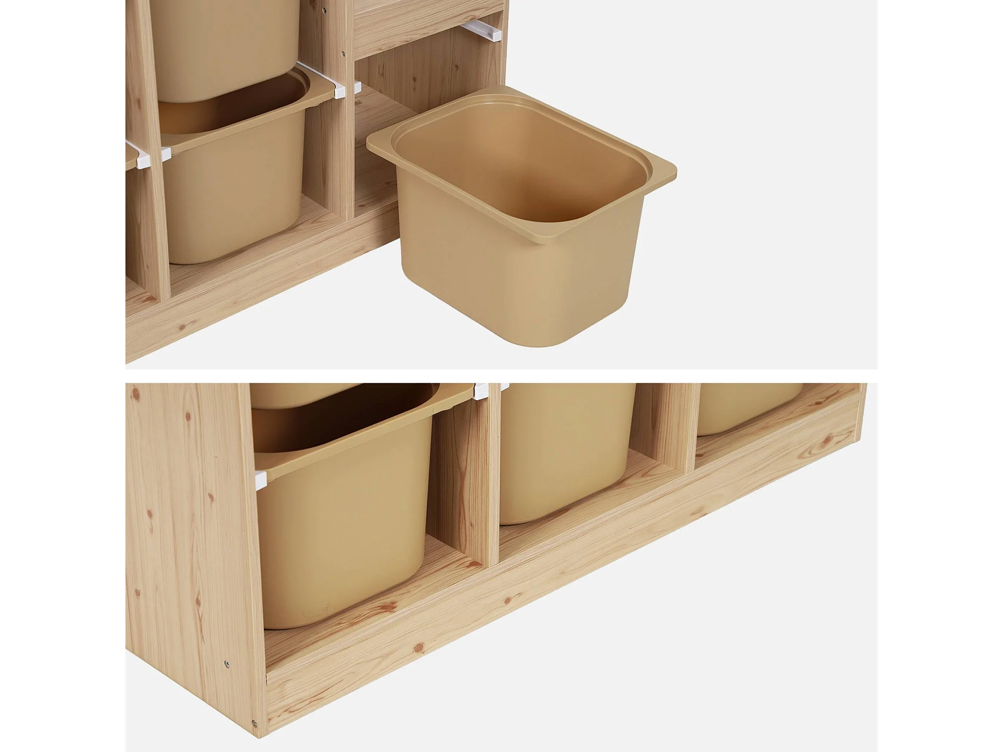 Meuble de rangement enfant escalier 6 bacs de rangement décor bois naturel et beige - Sora