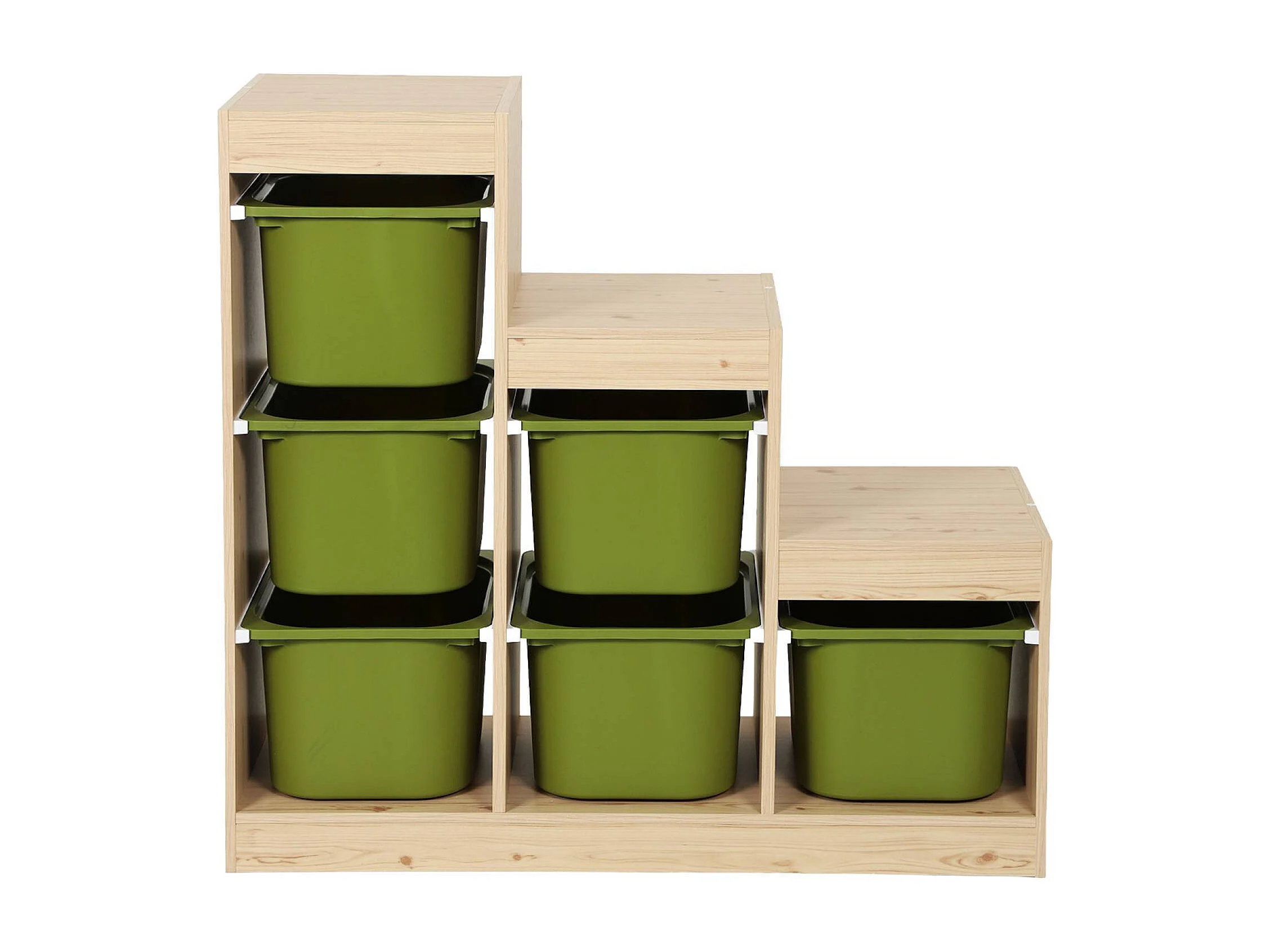 Meuble de rangement enfant escalier 6 bacs de rangement décor bois naturel et kaki - Sora