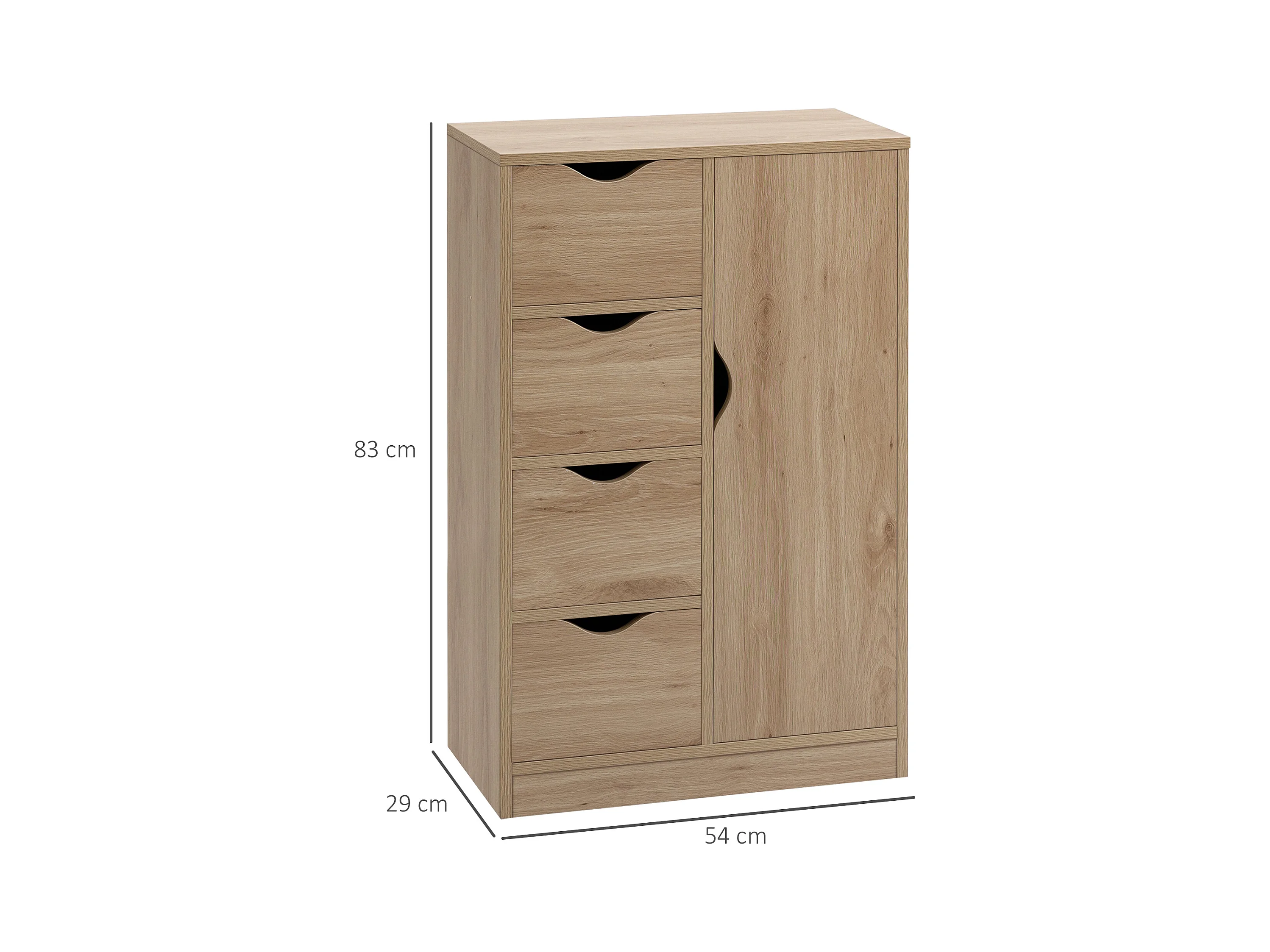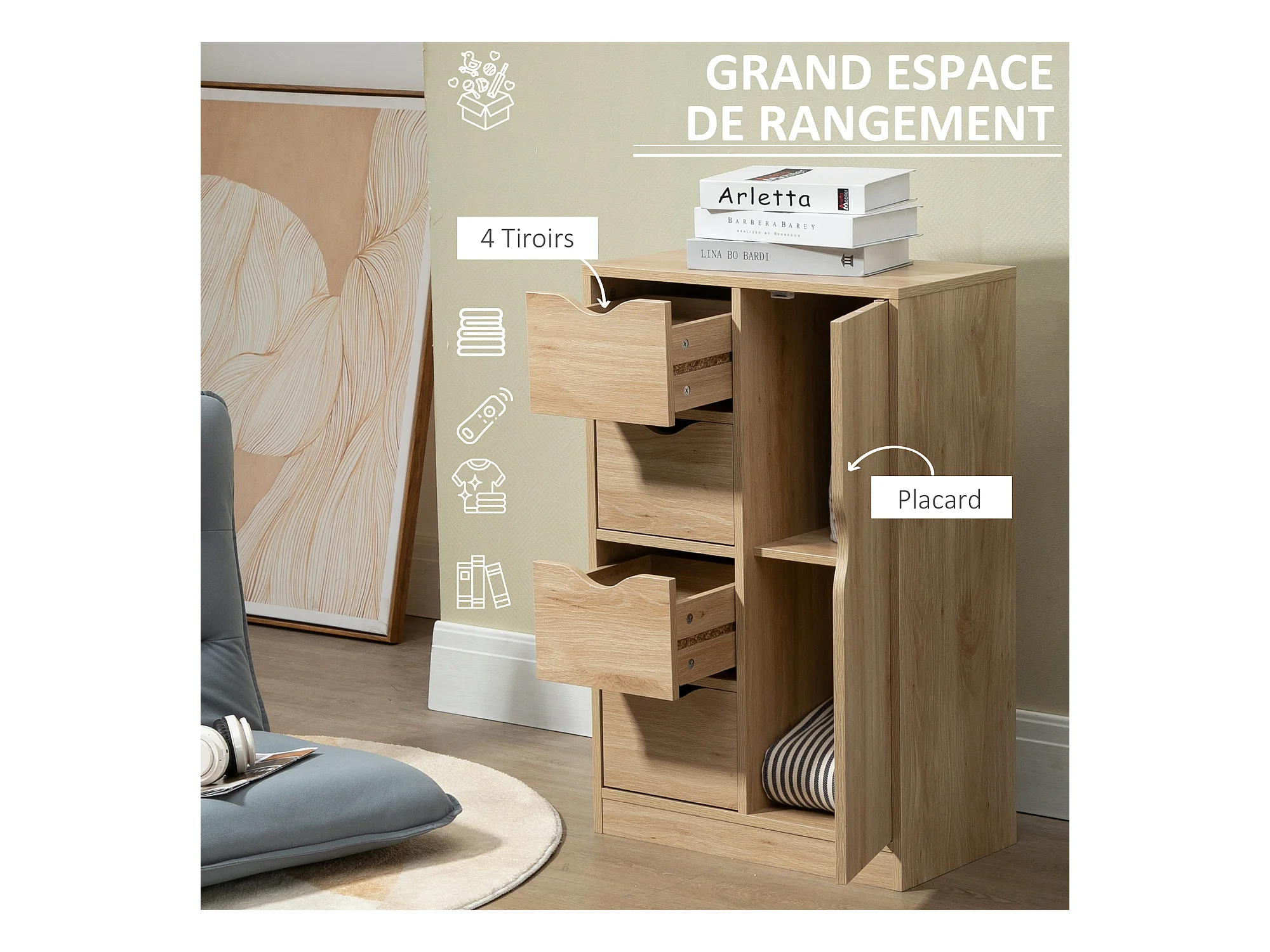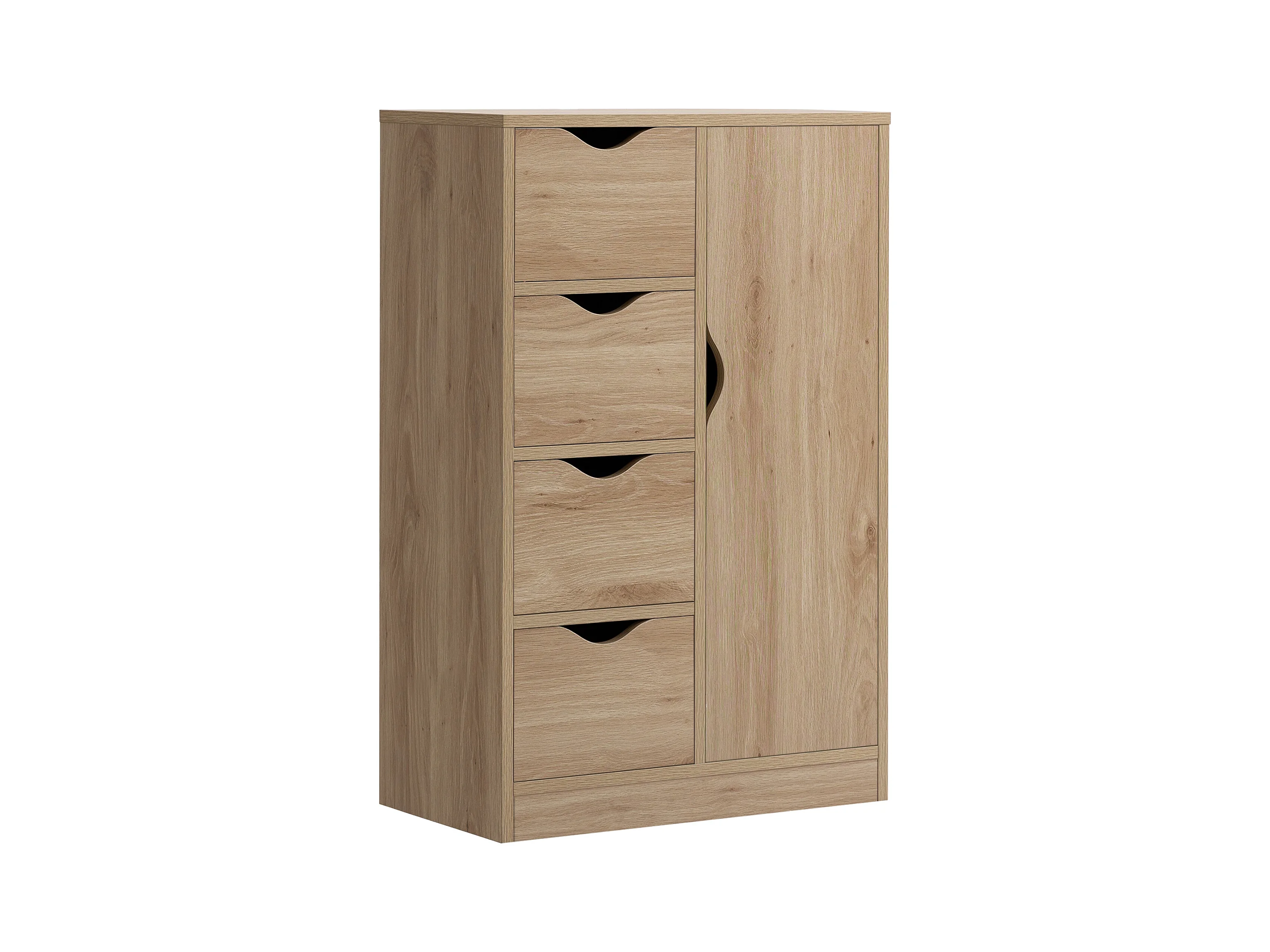Meuble de rangement moderne 1 porte 4 tiroirs - panneaux particules aspect chêne clair