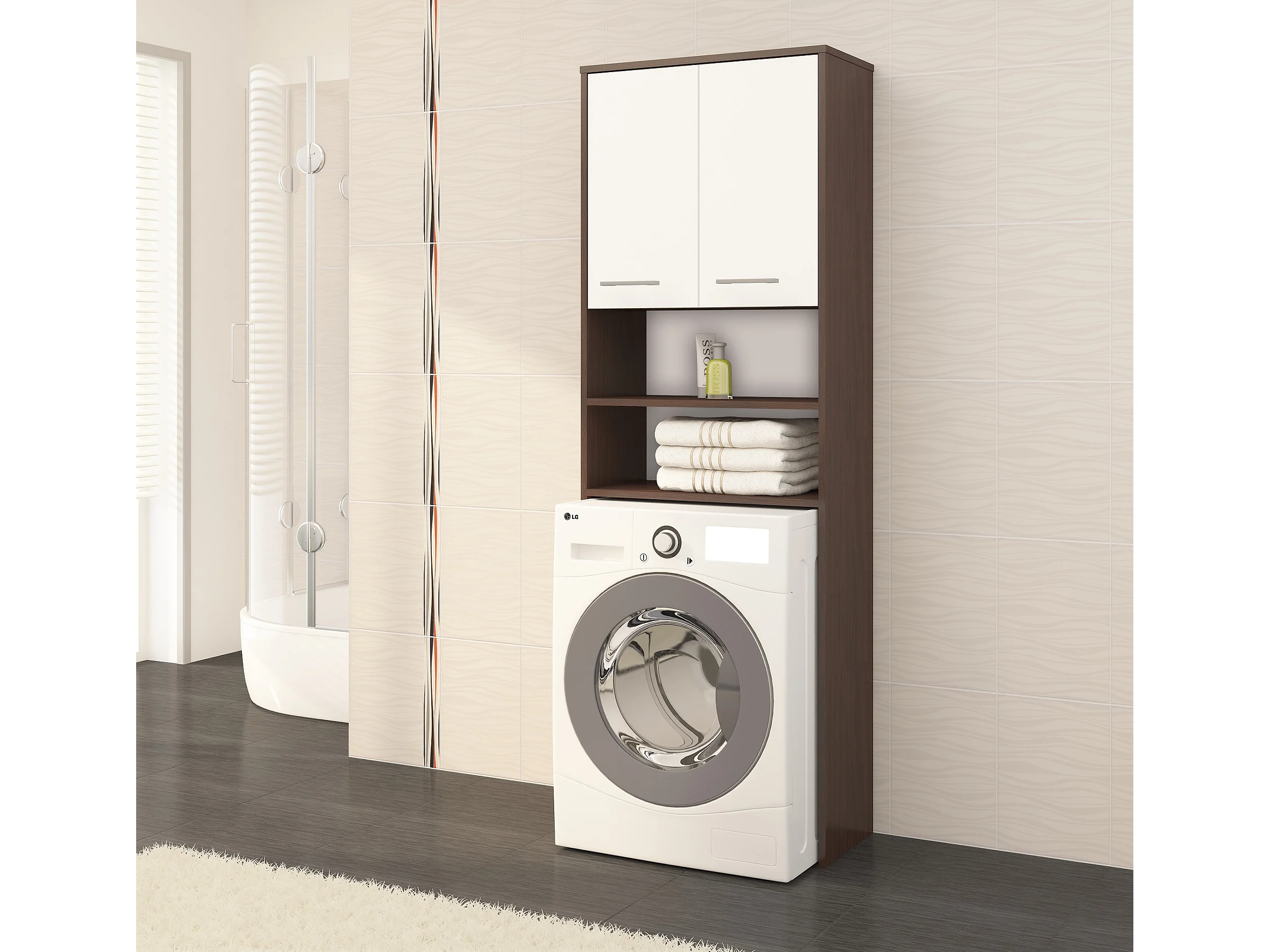 Meuble pour la machine a laver, 2 armoires, 2 étagères, 180 x 64 x 30 cm, wengé