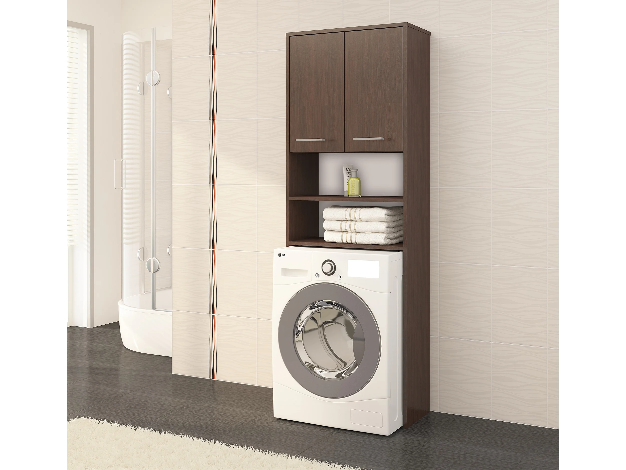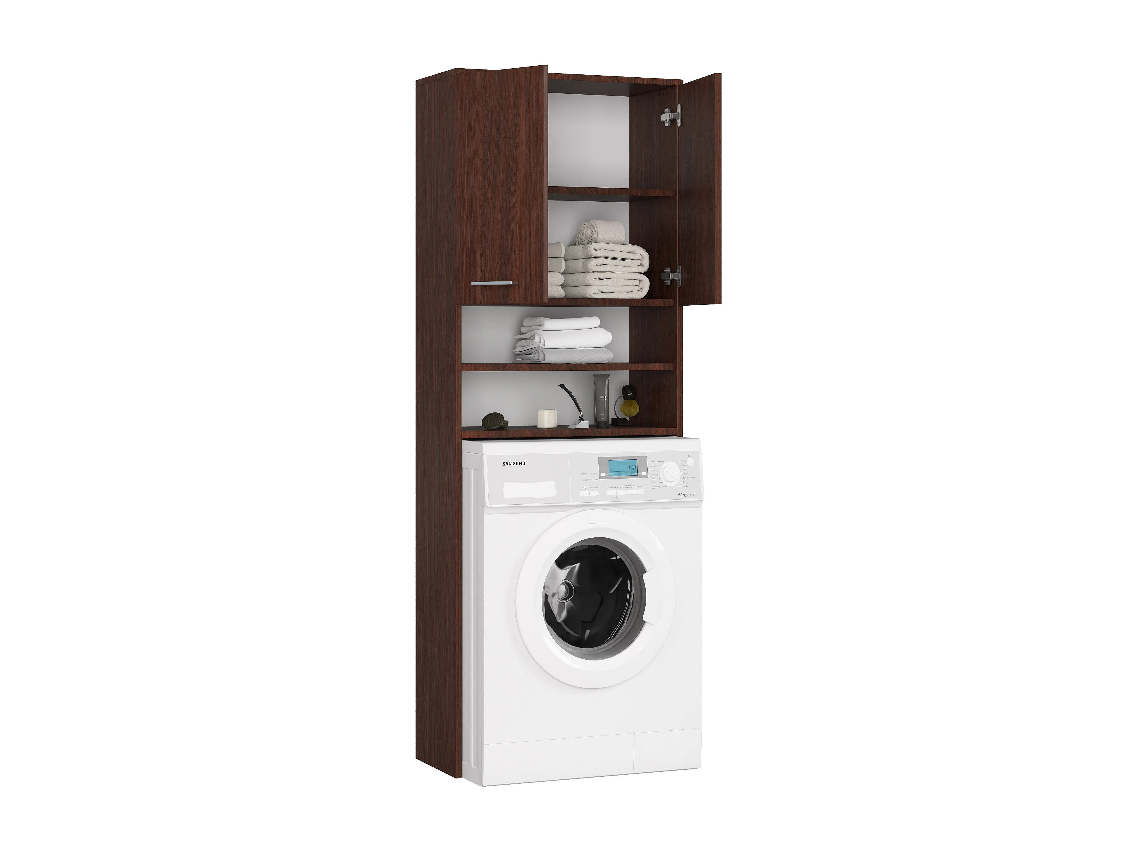 Meuble pour la machine a laver, 2 armoires, 2 étagères, 180 x 64 x 30 cm, wengé