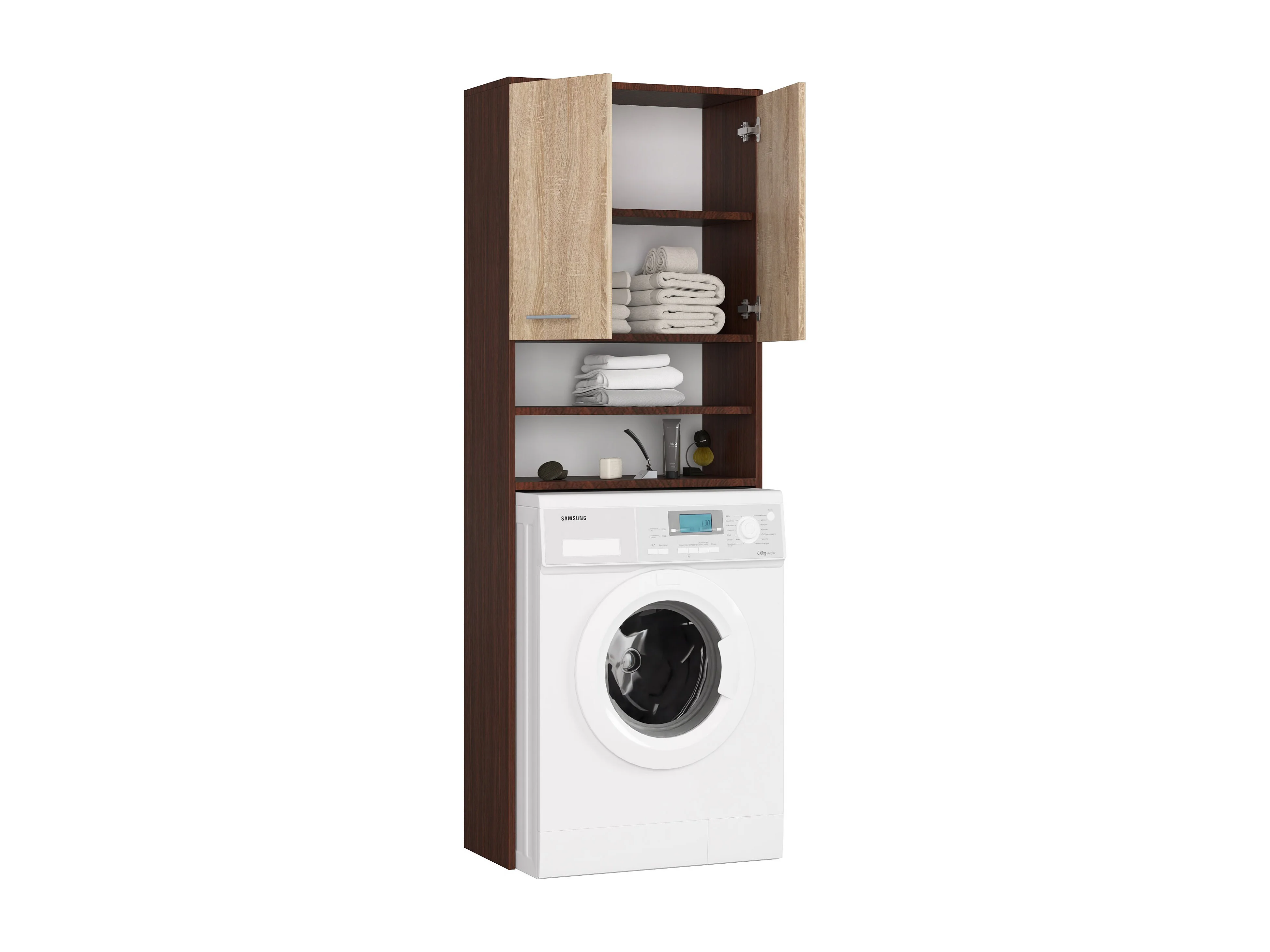 Meuble pour la machine a laver, 2 armoires, 2 étagères, 180 x 64 x 30 cm, wengé