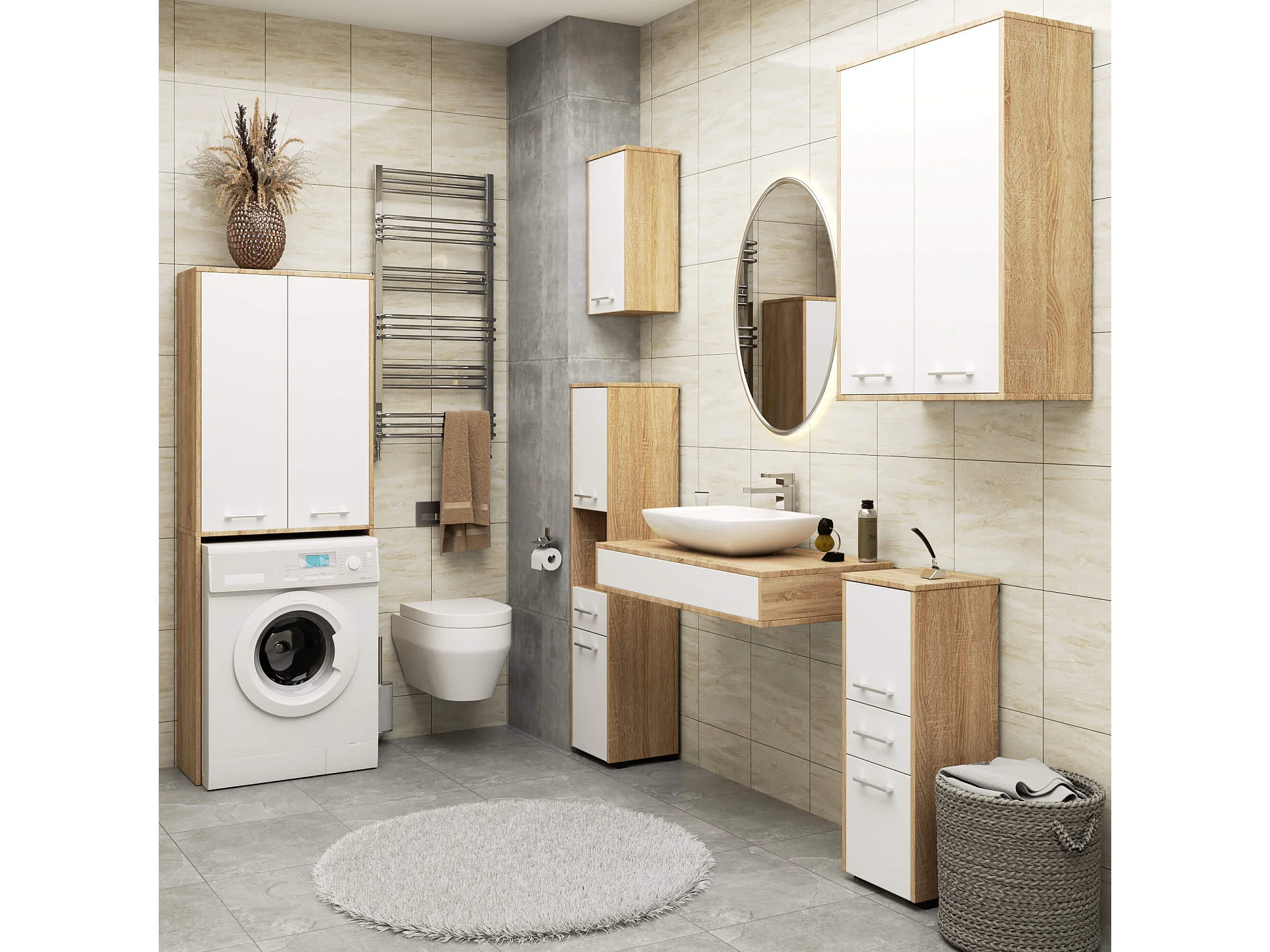 COMO - Meuble pour machine à laver - 64x183x30cm - Rangement espace buanderie lave linge salle de bains - Style moderne