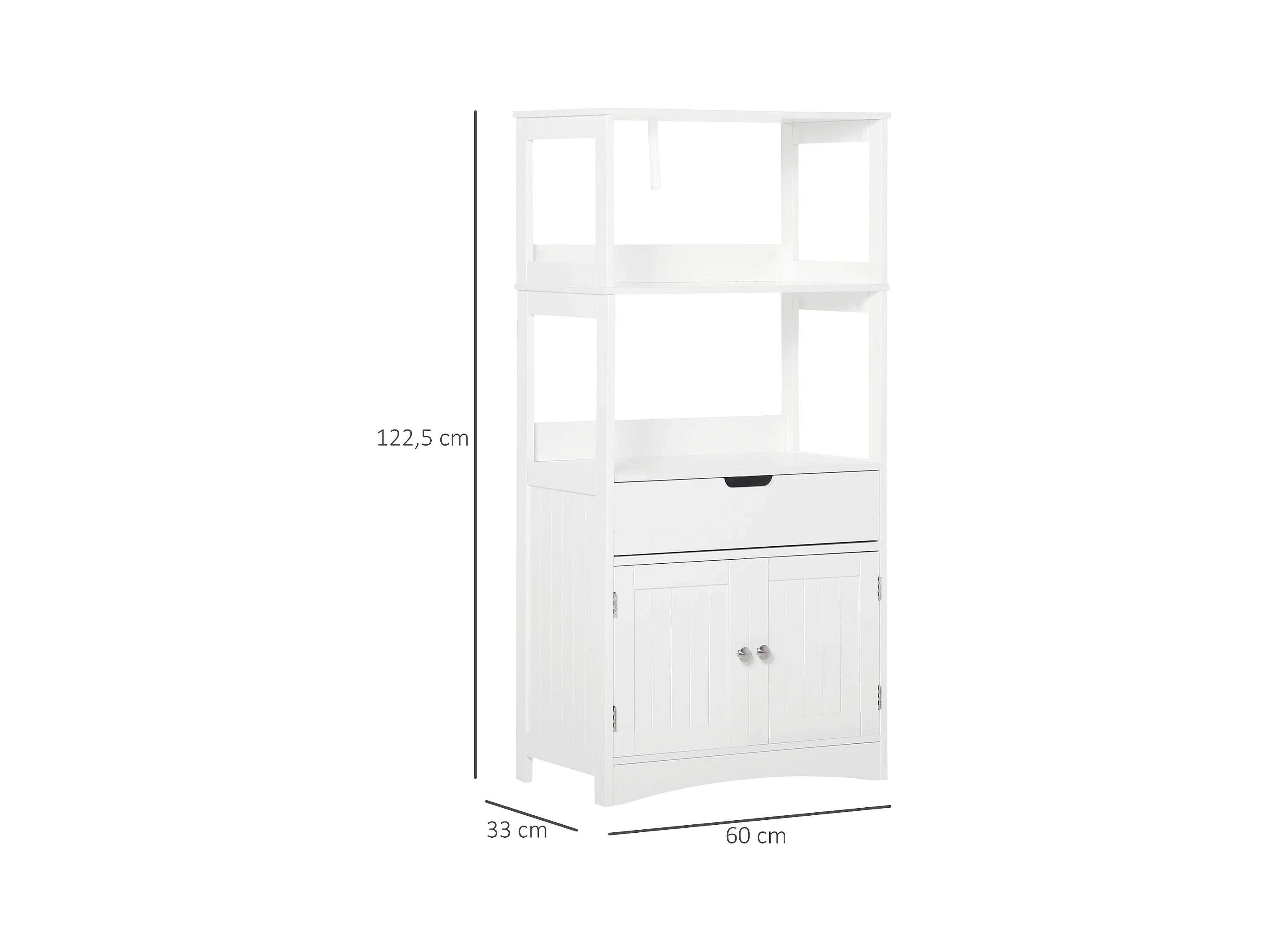 Meuble de rangement salle de bain - 2 portes, tiroir, 3 étagères - dim. 60L x 33l x 122H cm - MDF blanc