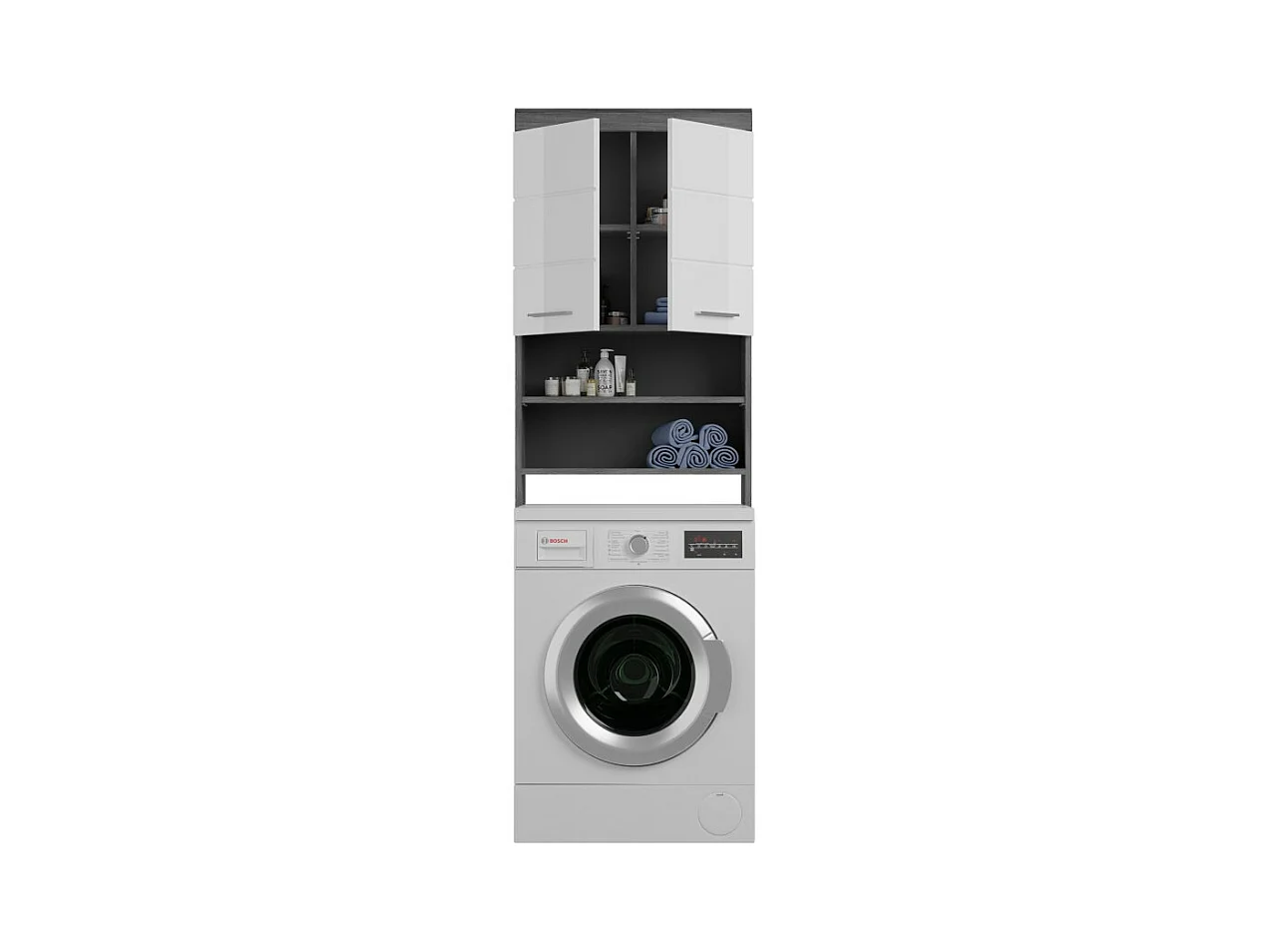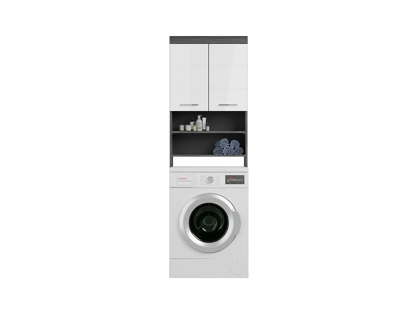Meuble de rangement SCOTT – Machine à laver – Gris foncé et blanc – 63x191x24 cm