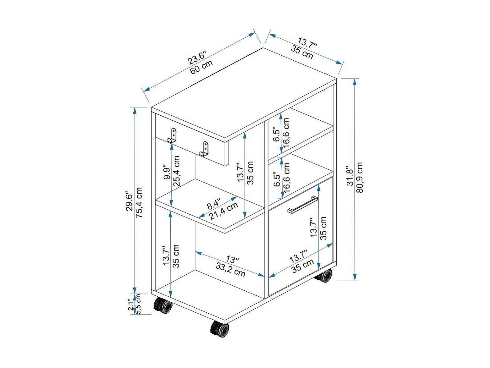 Meuble de rangement sur roulettes effet bois de pin MARFA