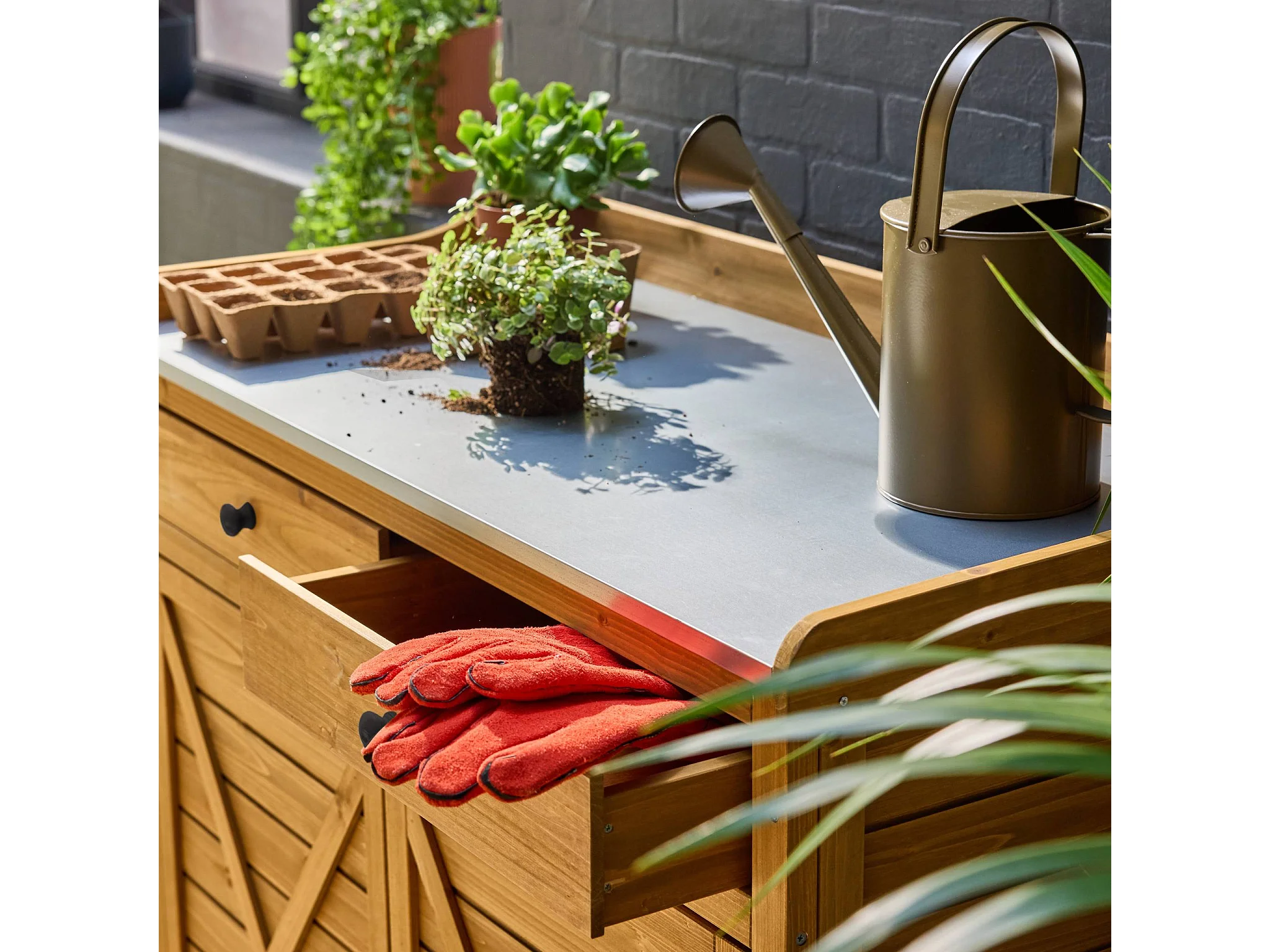 Meuble de rangement. table de rempotage en bois avec 2 portes et 2 tiroirs. L 102 x P 52.8 x H 103.5cm