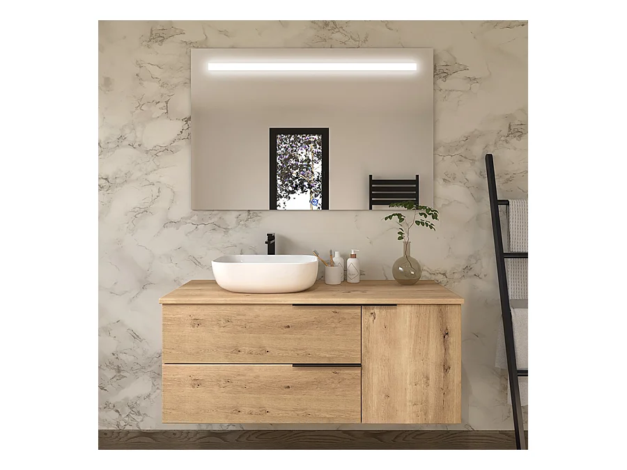 Meuble de salle de bain 100 cm avec vasque à poser arrondie - 2 tiroirs - KING et miroir Led STAM