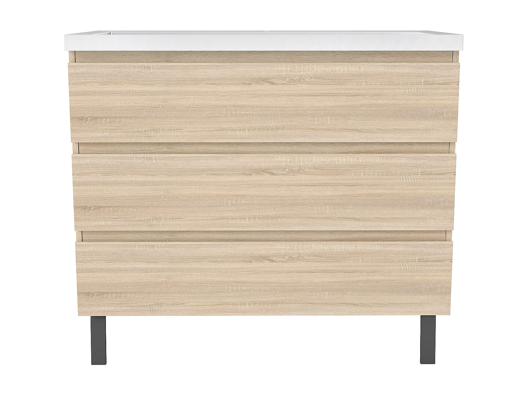 Meuble de Salle de Bain 100cm avec 3 tiroirs + 2 Pieds, Meuble simple vasque céramique, Chêne