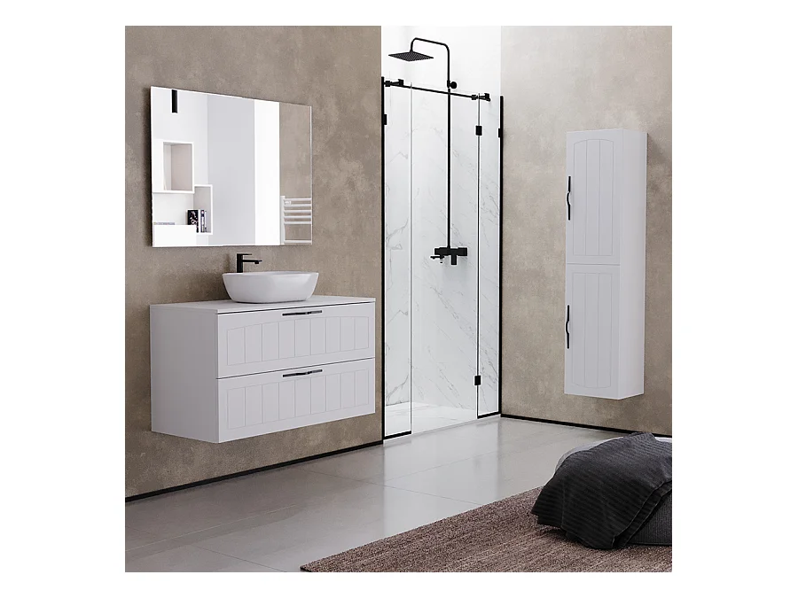 Meuble de salle de bain 100cm avec plateau et vasque à poser ovale - 2 tiroirs - sans miroir - blanc - PIA