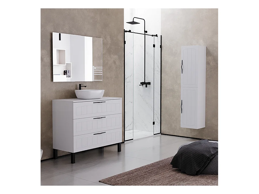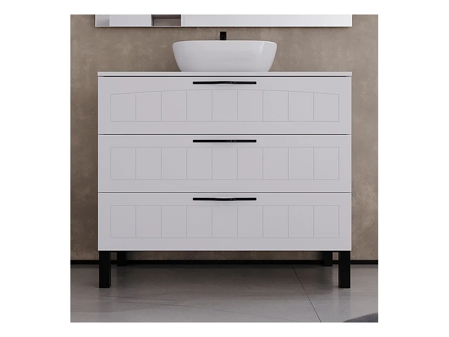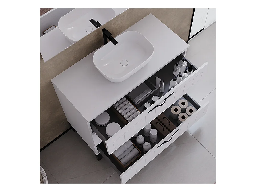 Meuble de salle de bain 100cm avec plateau et vasque à poser ovale - 3 tiroirs - sans miroir - blanc - CALA
