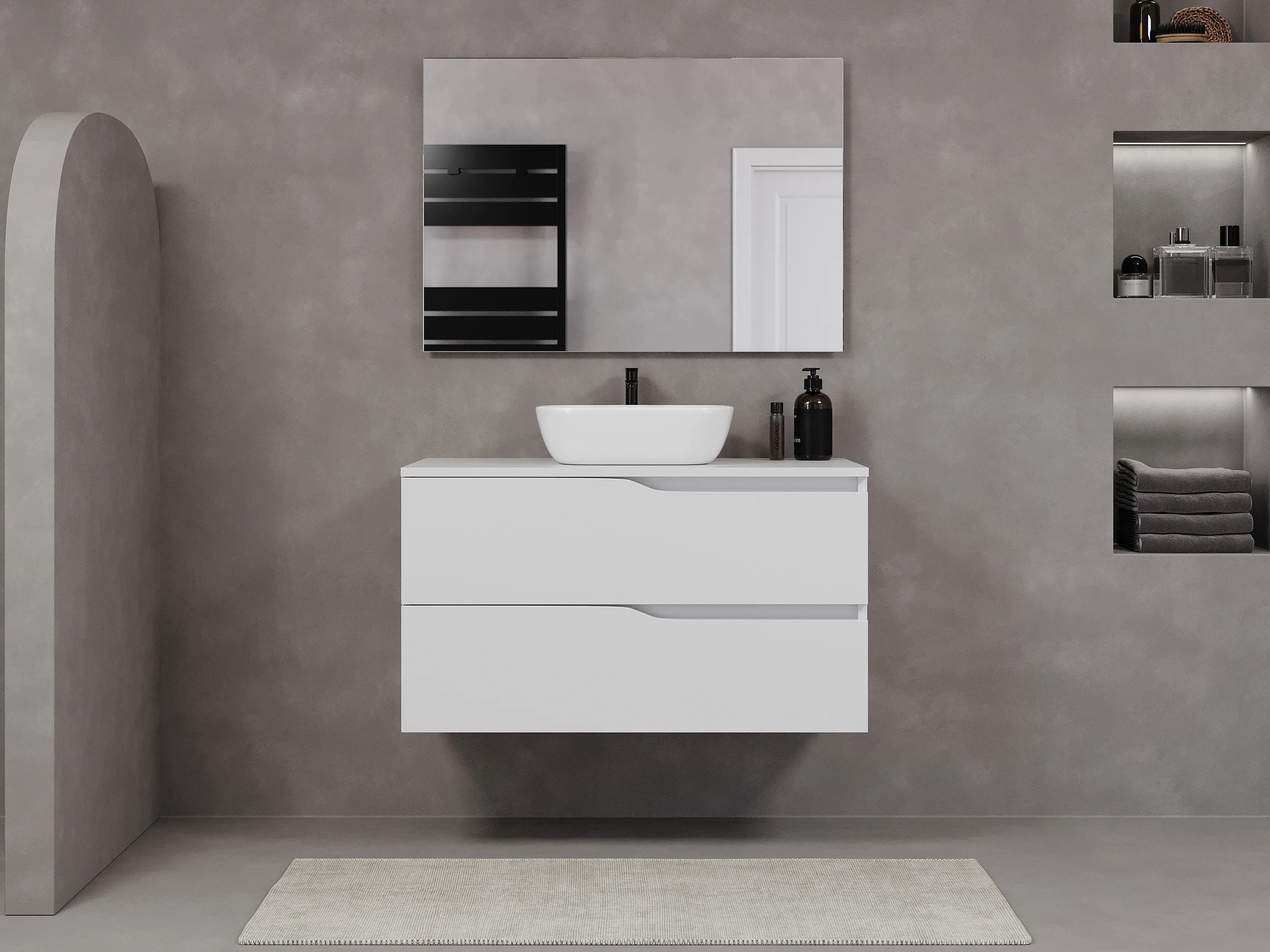 Meuble de salle de bain 100cm avec plateau et vasque à poser zeus - 2 tiroirs - blanc - LUNA