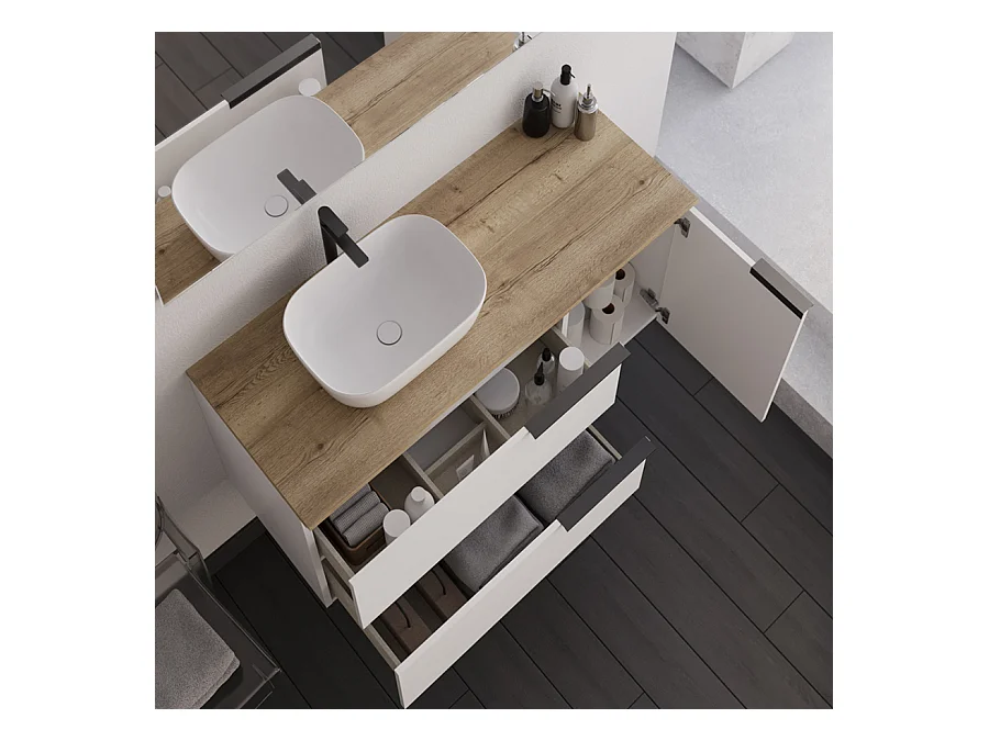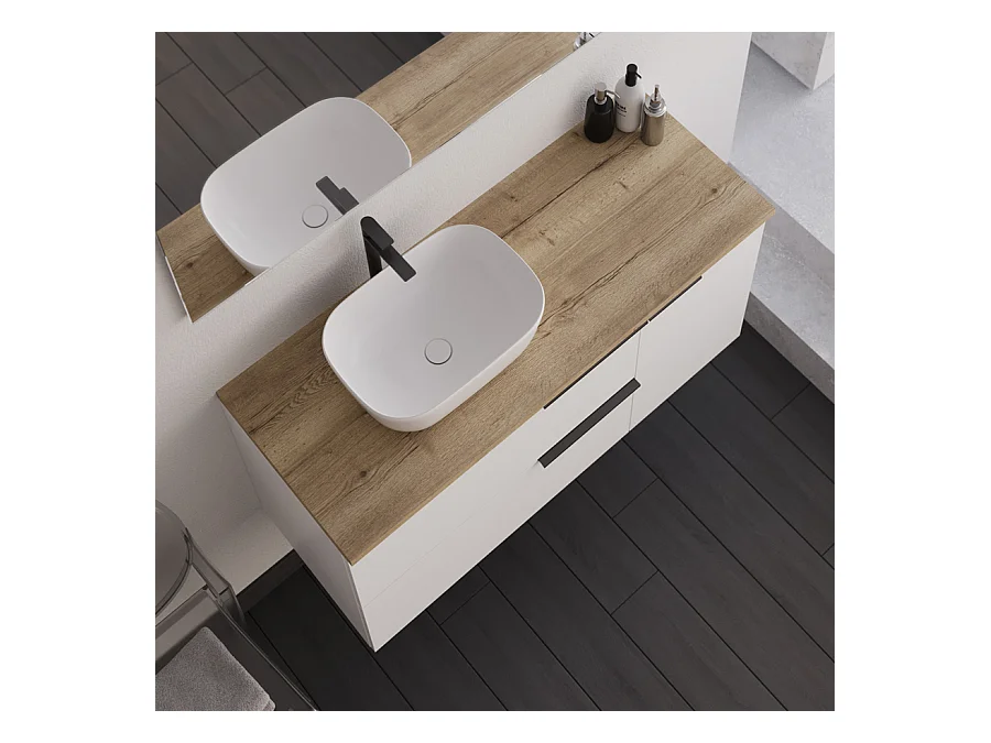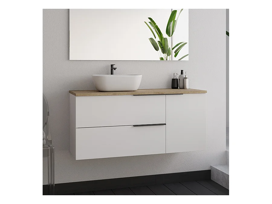 Meuble de salle de bain 100cm avec vasque à poser arrondie - sans miroir - blanc - KING