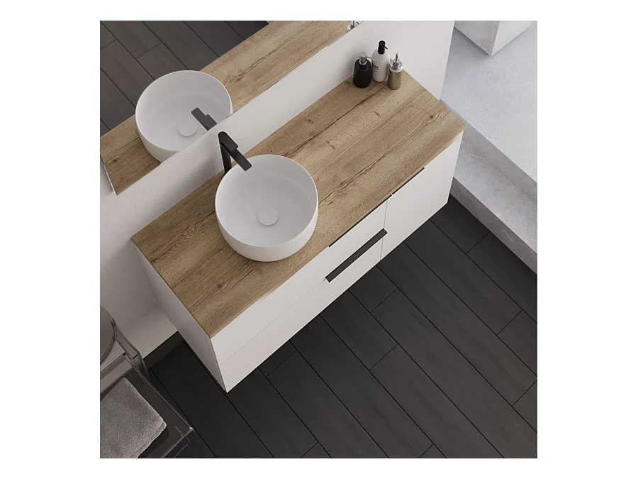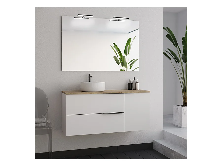 Meuble de salle de bain 100cm avec vasque à poser ronde et miroir avec appliques - blanc - KING