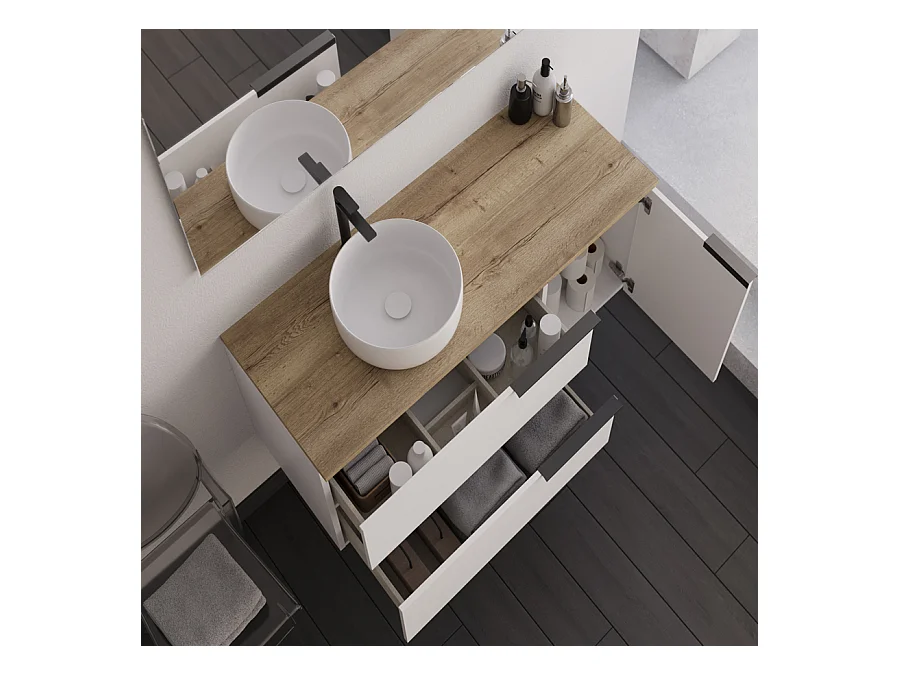 Meuble de salle de bain 100cm avec vasque à poser ronde - sans miroir - blanc - KING