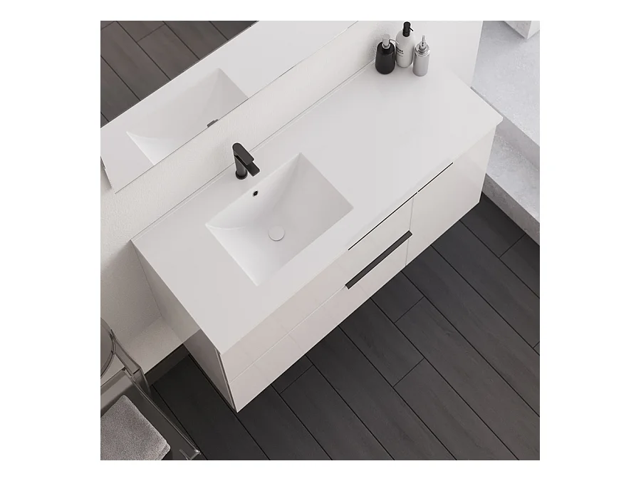 Meuble de salle de bain 100cm avec vasque déportée - blanc - KING et miroir STAM